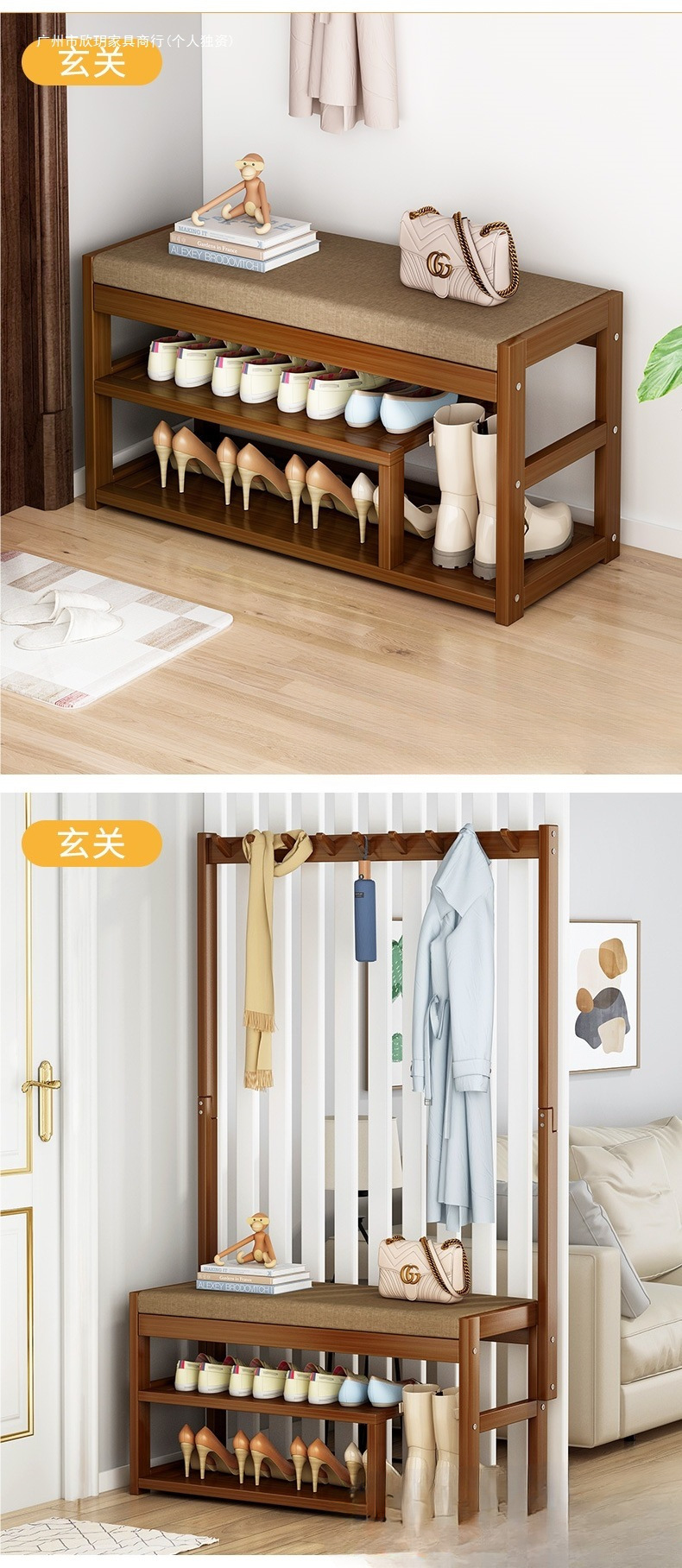 신발장과 코트걸이 일체형 바닥에서 천장까지 침실 코너 홈 거실 출입구 옷걸이 현관 신발장 신발교환스툴