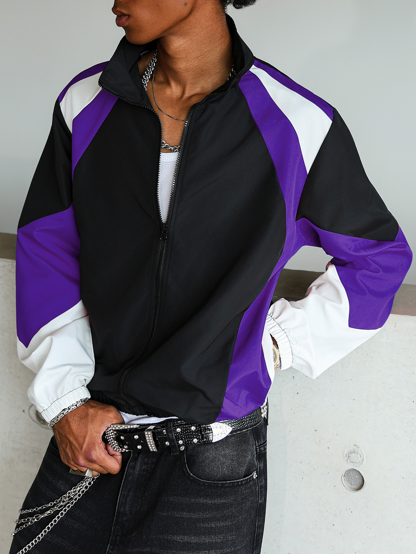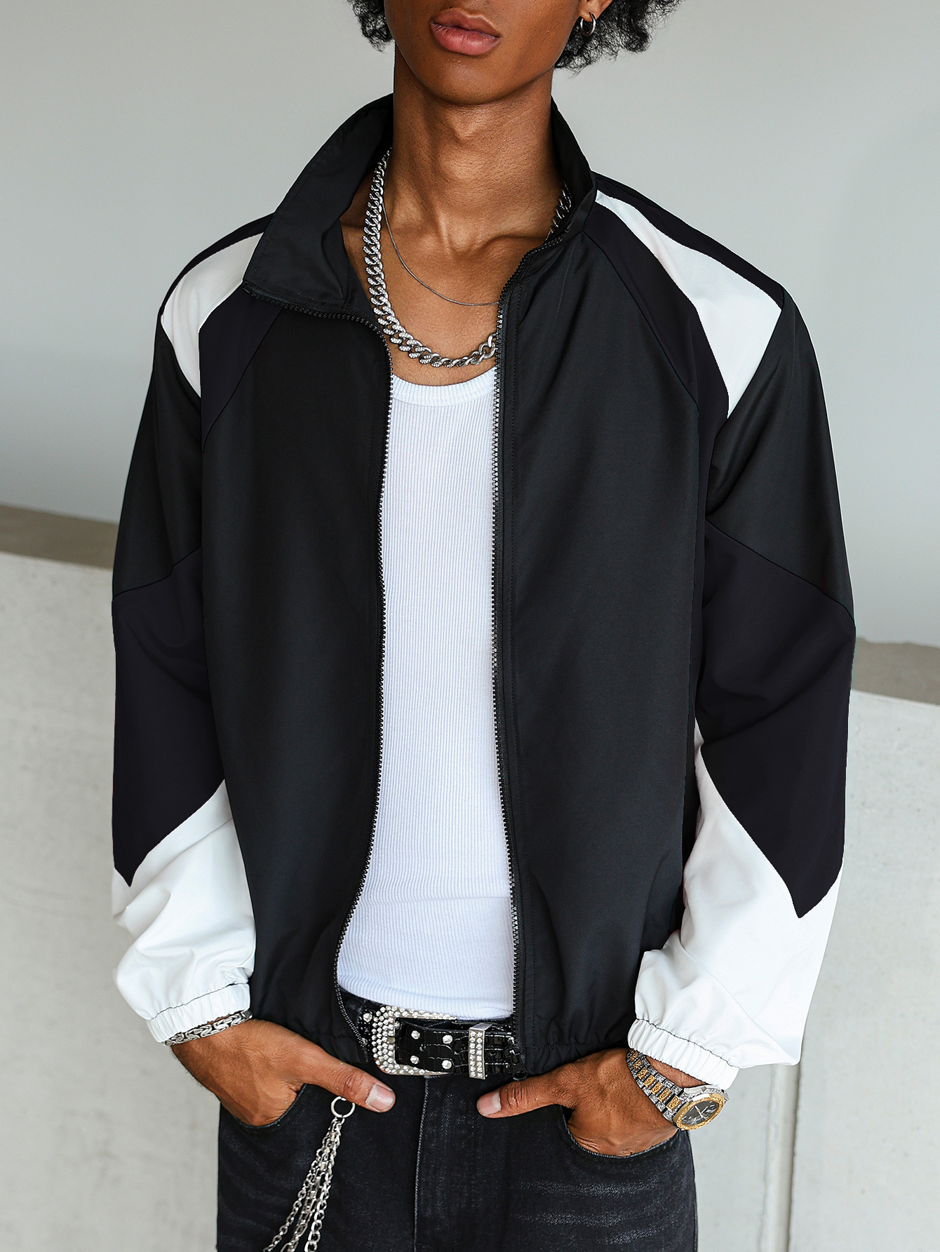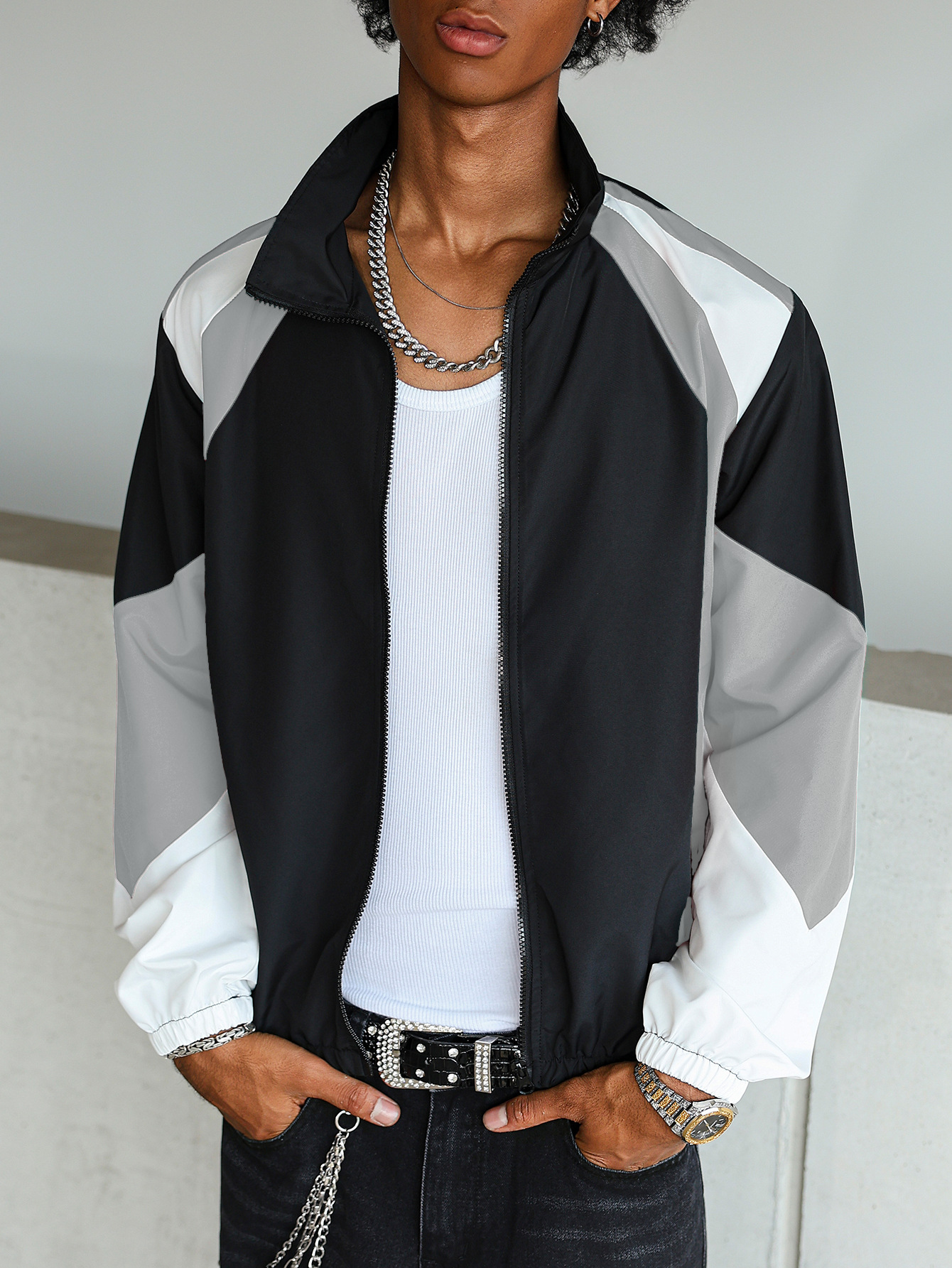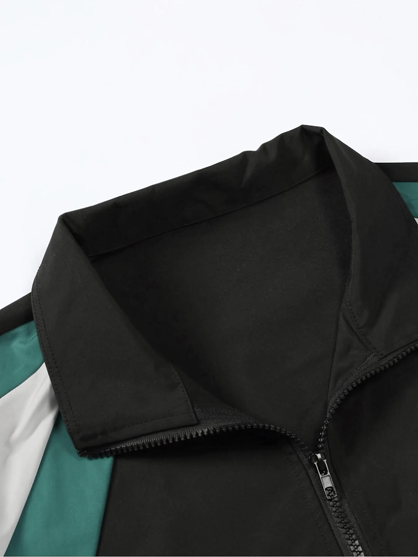 남성용 컬러 스티치 지퍼 재킷, 봄과 가을에 적합한 레귤러핏 긴 소매 캐주얼 아우터,스토어 가기