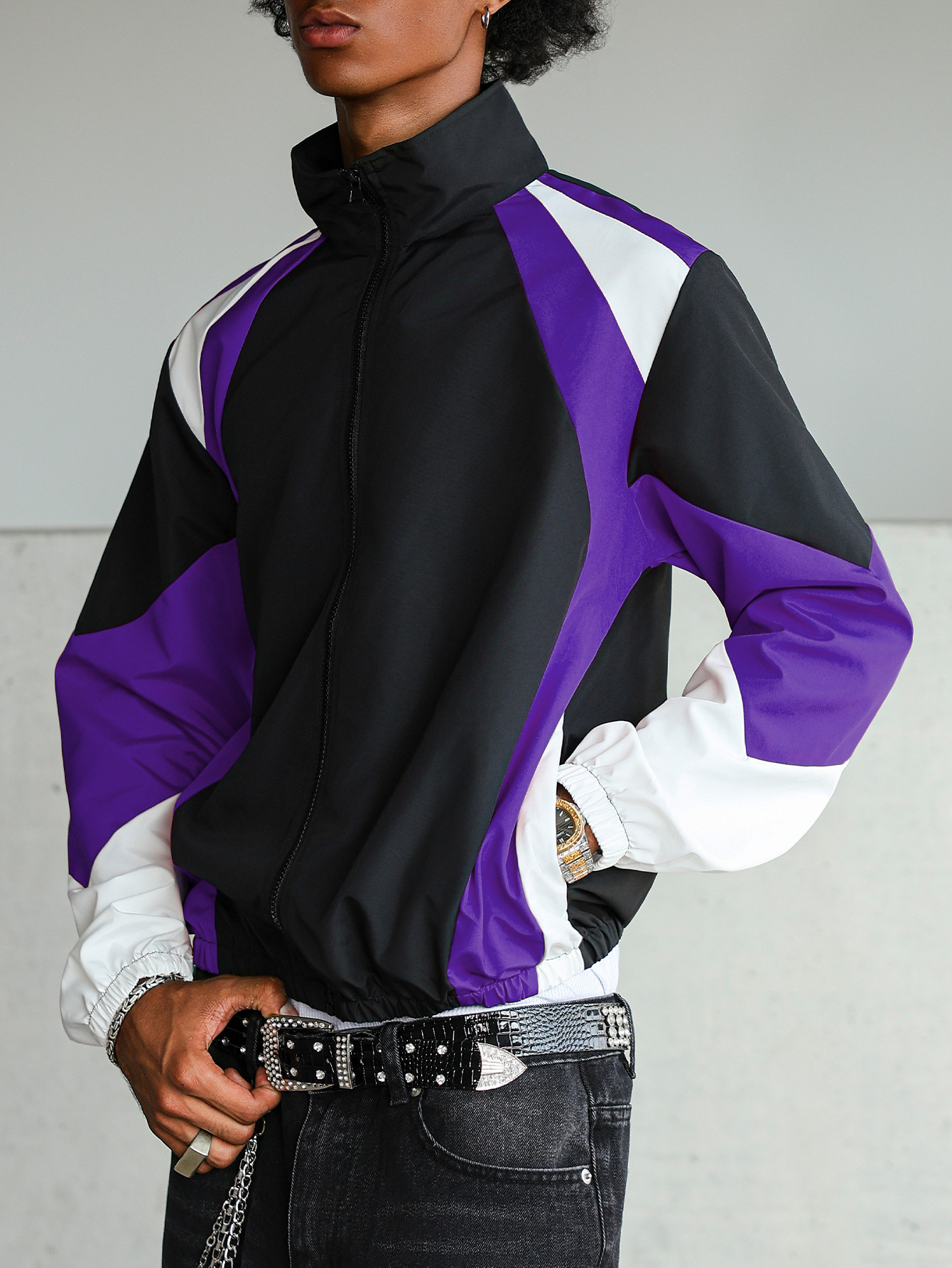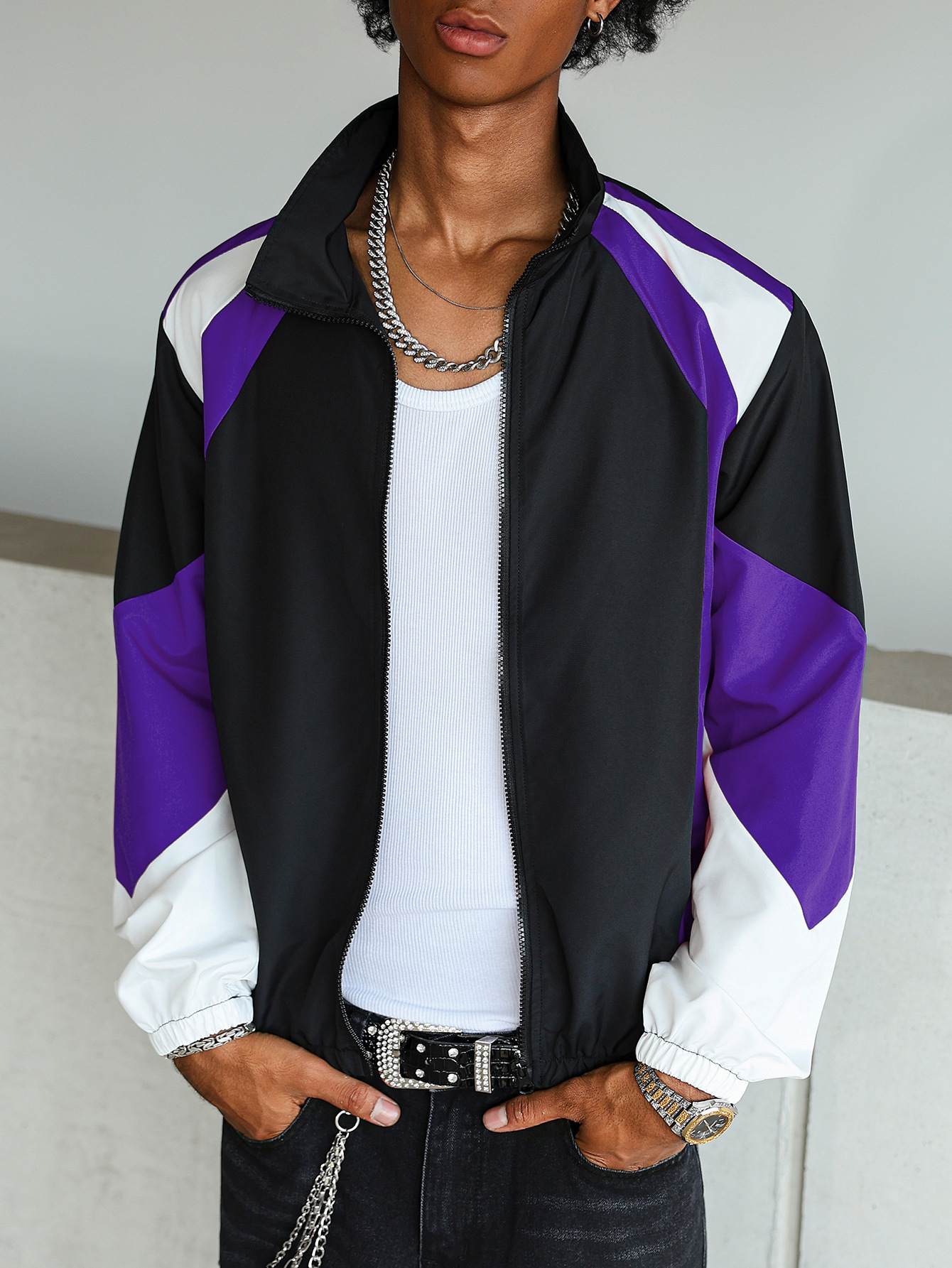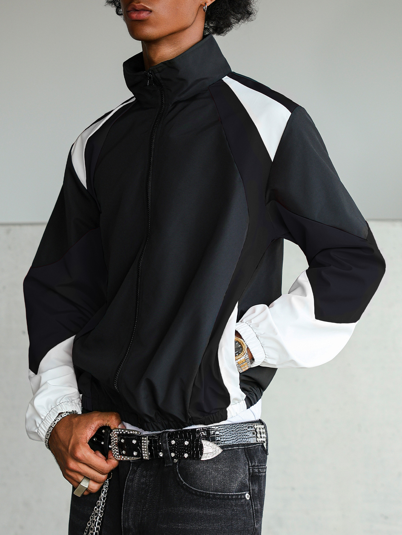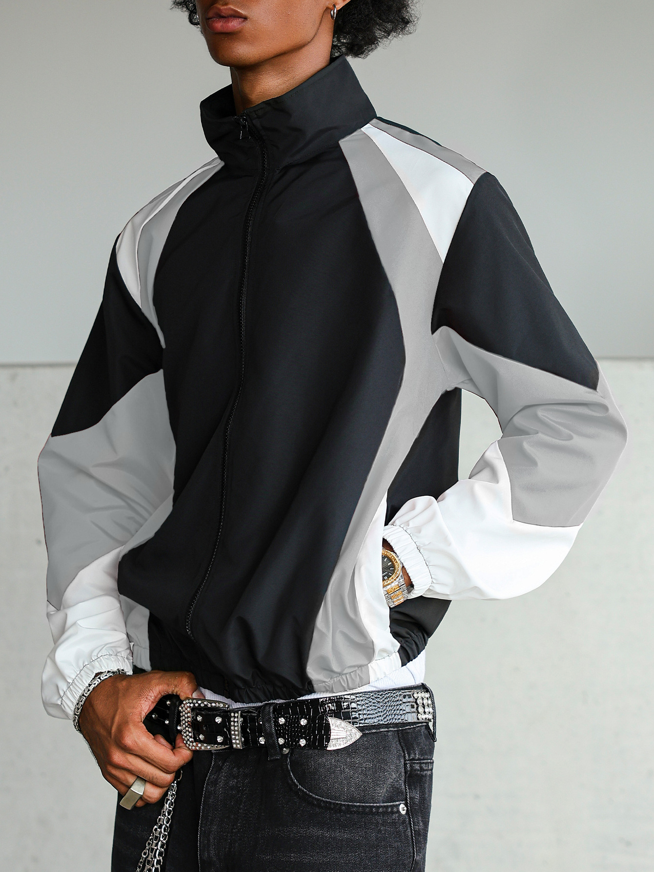 남성용 컬러 스티치 지퍼 재킷, 봄과 가을에 적합한 레귤러핏 긴 소매 캐주얼 아우터,스토어 가기
