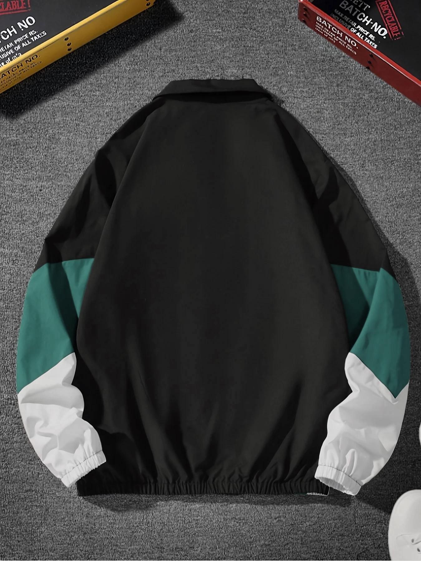 남성용 컬러 스티치 지퍼 재킷, 봄과 가을에 적합한 레귤러핏 긴 소매 캐주얼 아우터,