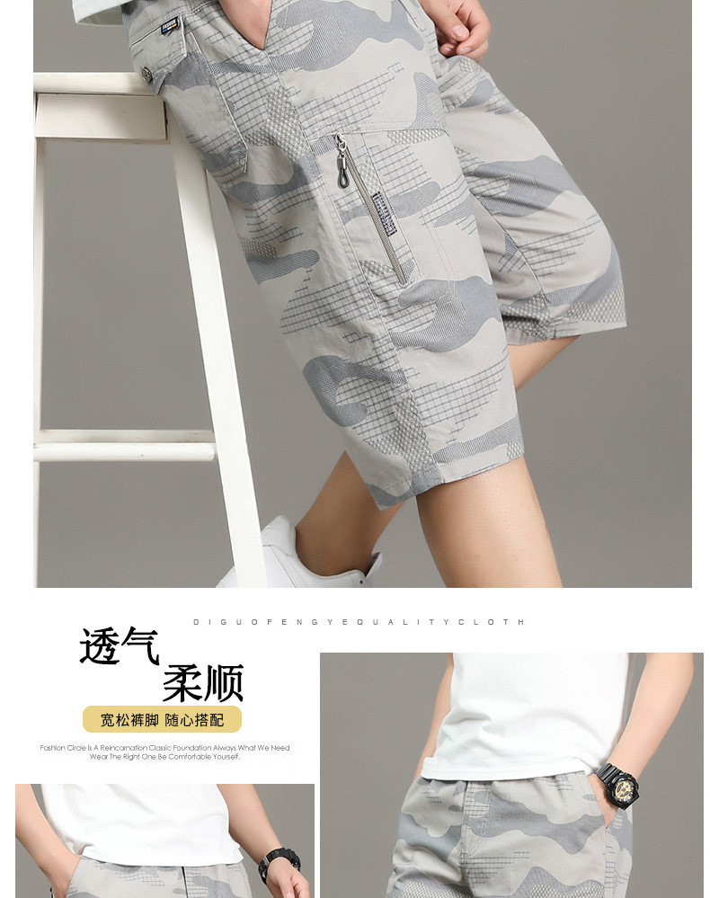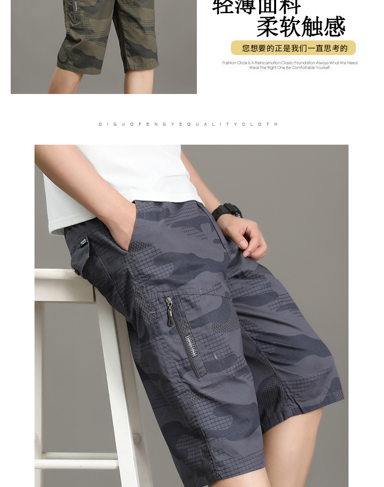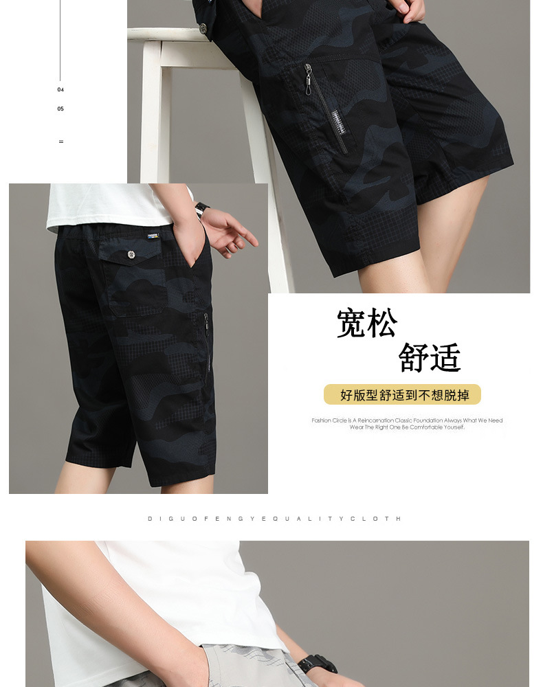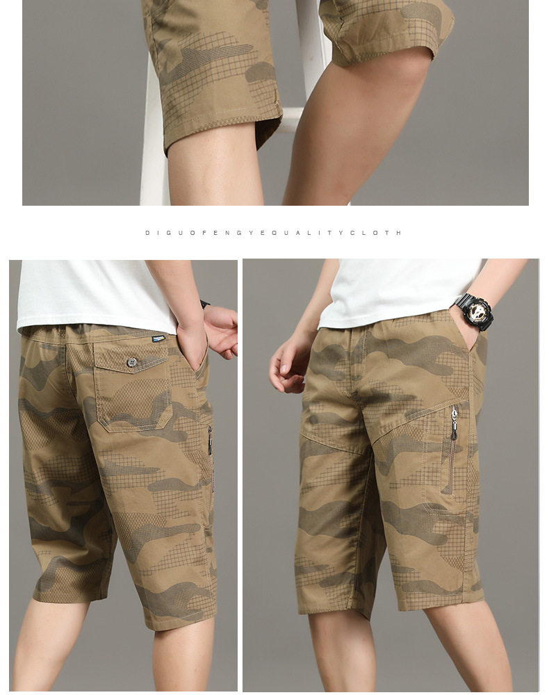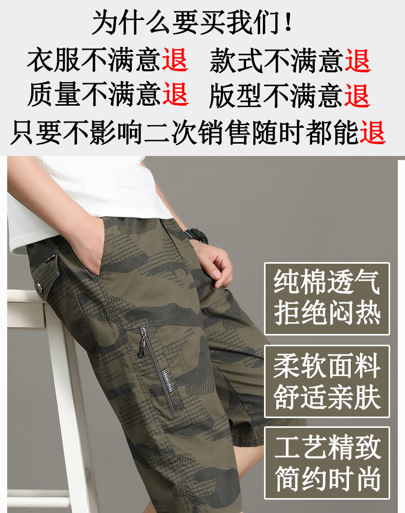 여름 얇은 멀티 포켓 캐주얼 반바지 카모 7부 바지 남성용 루즈 스트레이트 멀티 포켓 카고 바지스토어 가기
