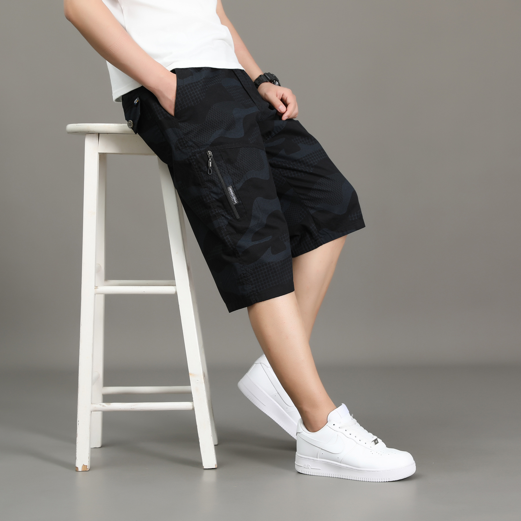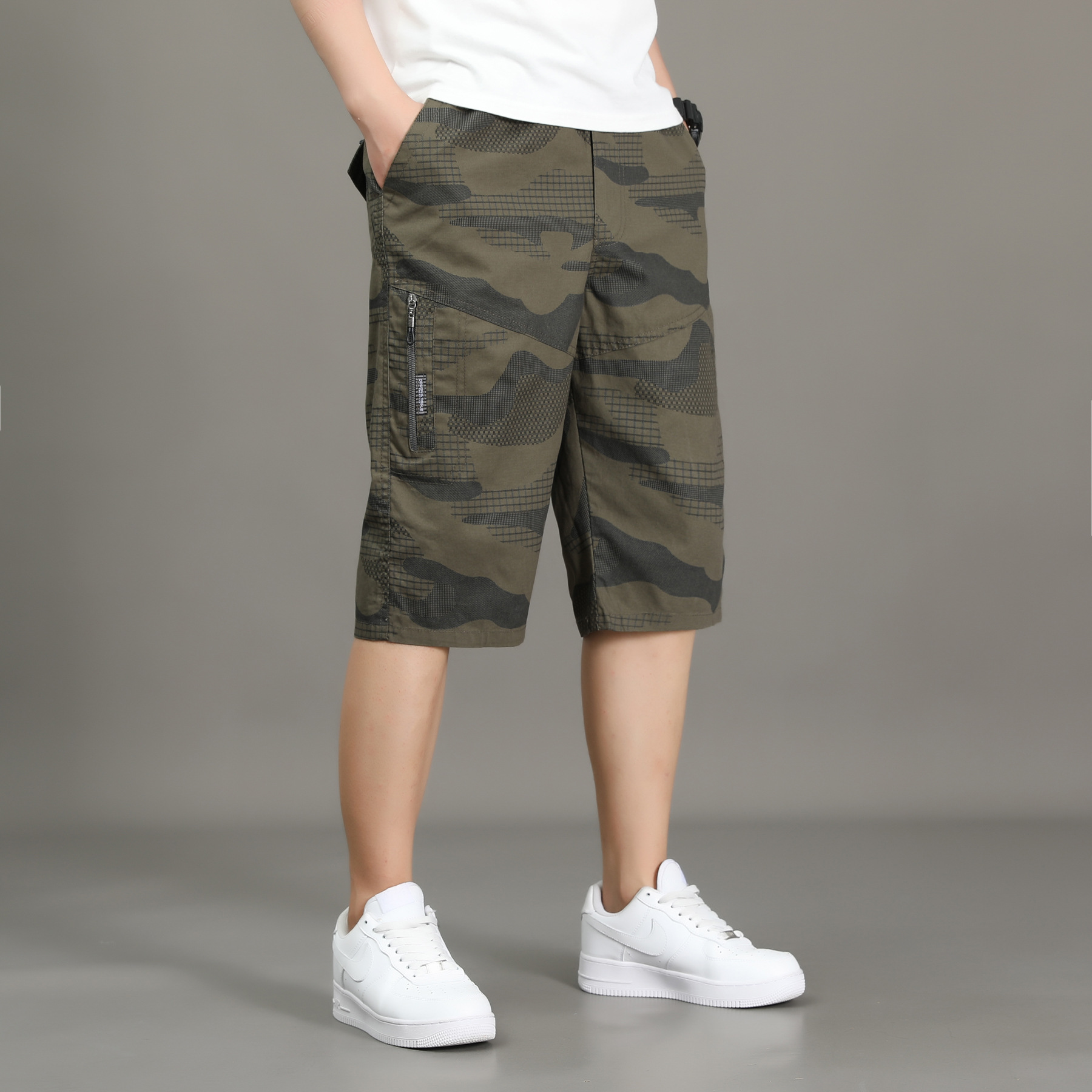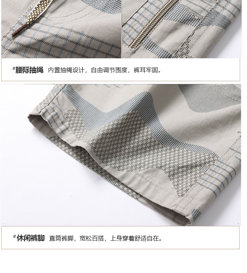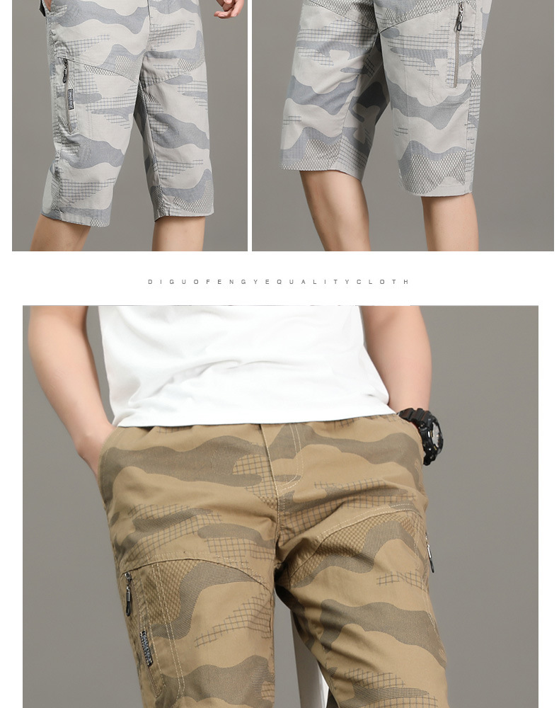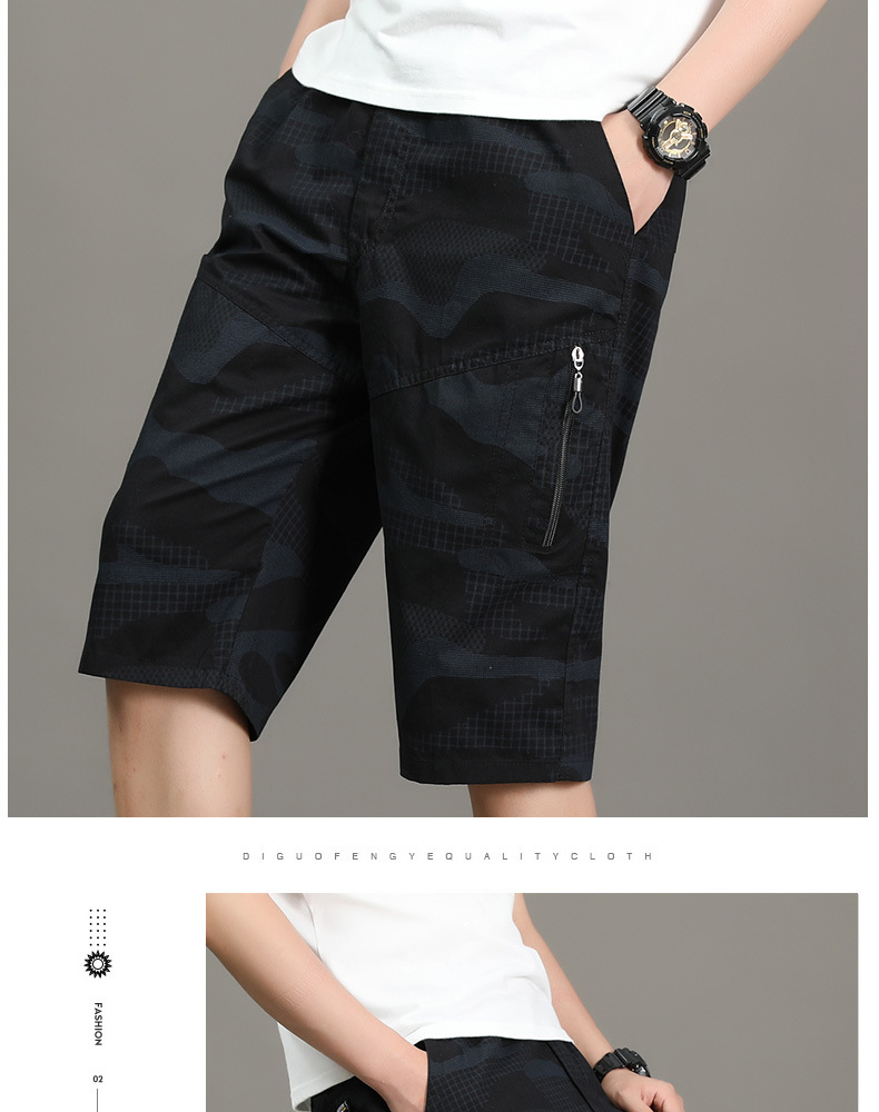 여름 얇은 멀티 포켓 캐주얼 반바지 카모 7부 바지 남성용 루즈 스트레이트 멀티 포켓 카고 바지스토어 가기