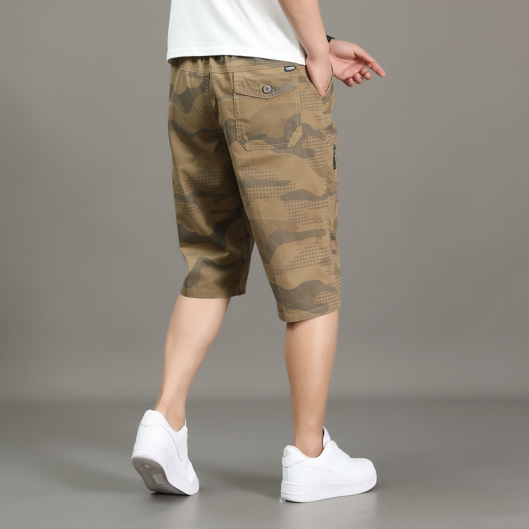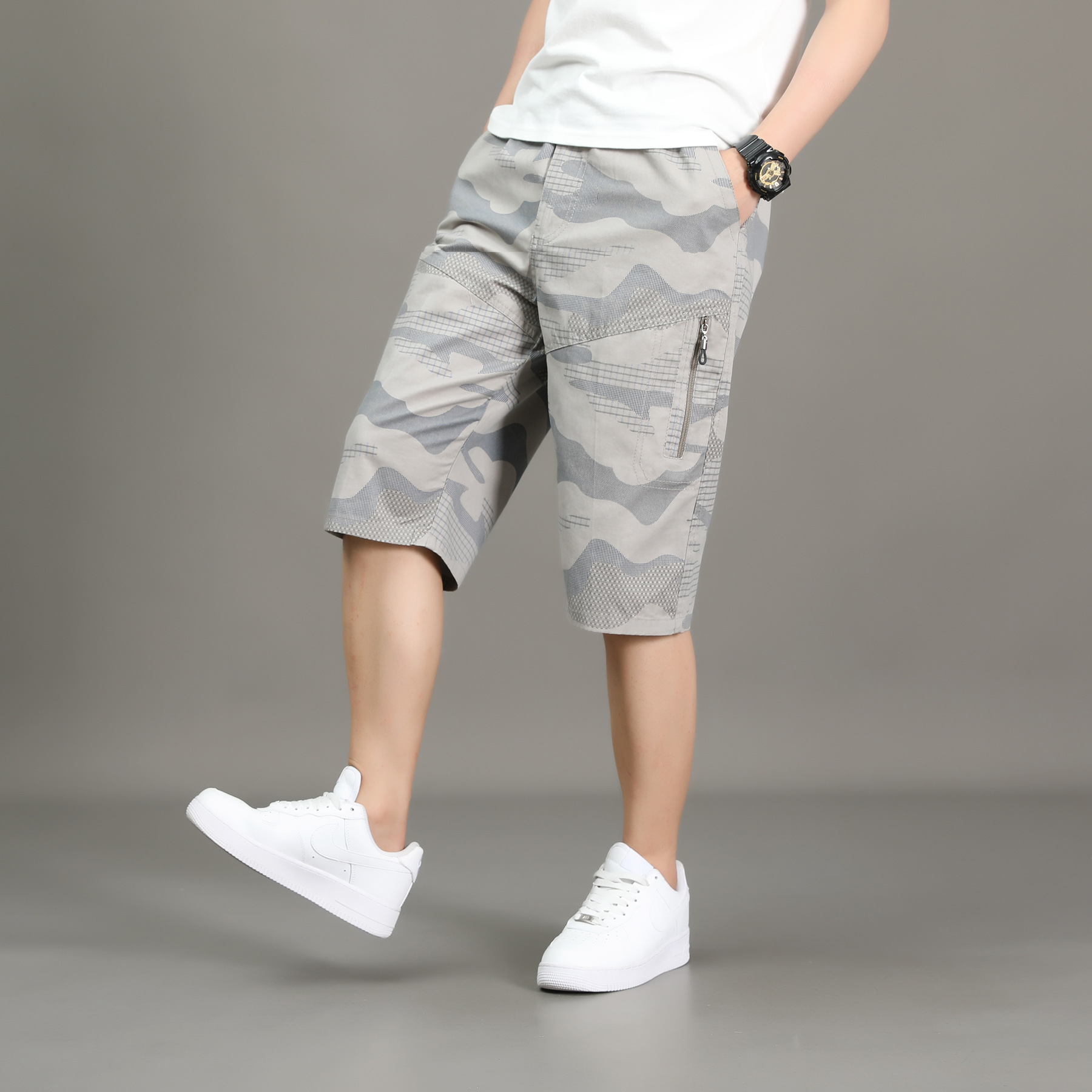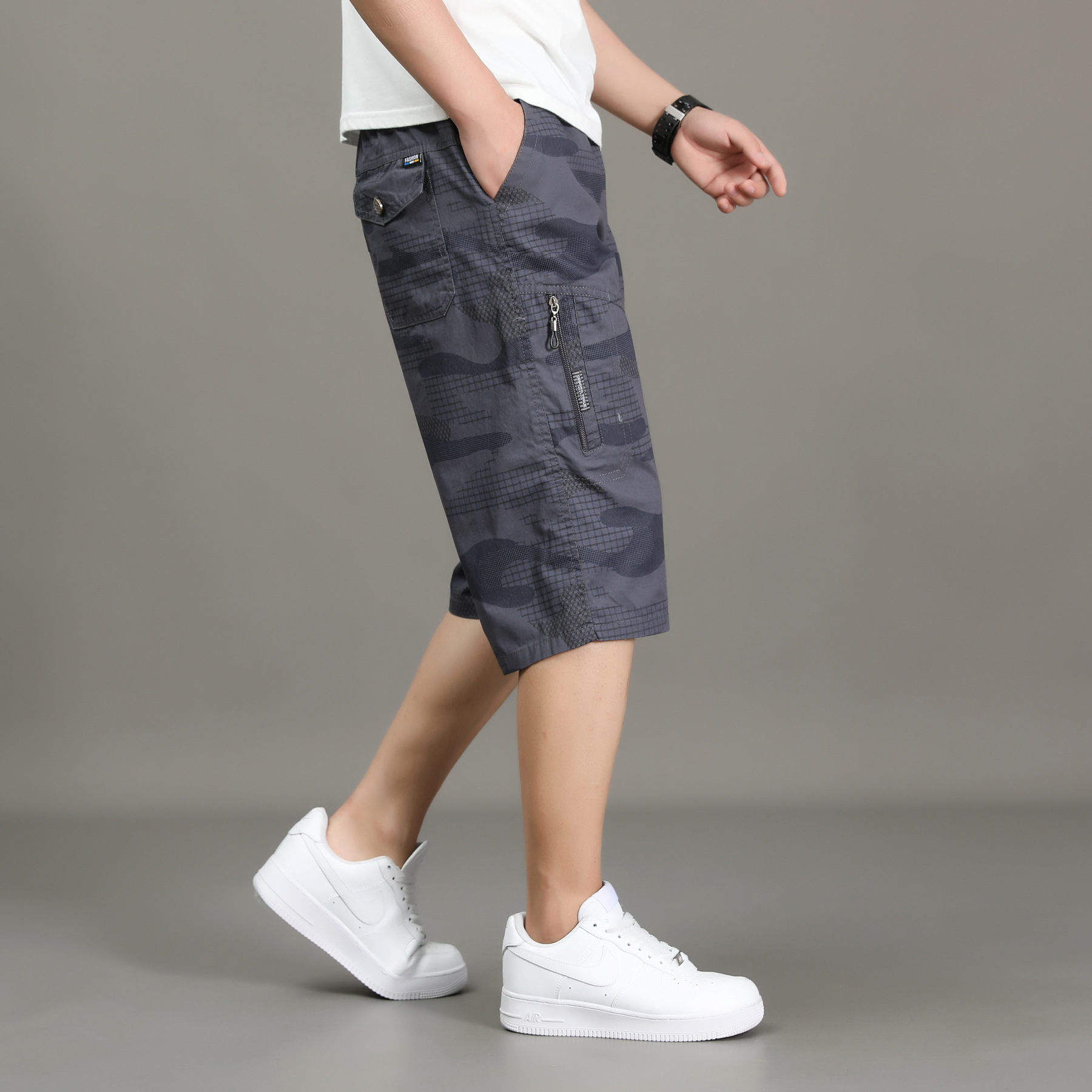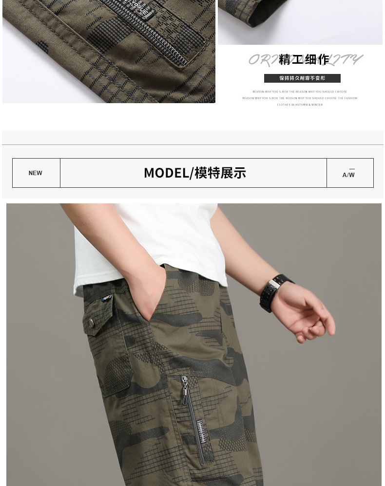 여름 얇은 멀티 포켓 캐주얼 반바지 카모 7부 바지 남성용 루즈 스트레이트 멀티 포켓 카고 바지스토어 가기