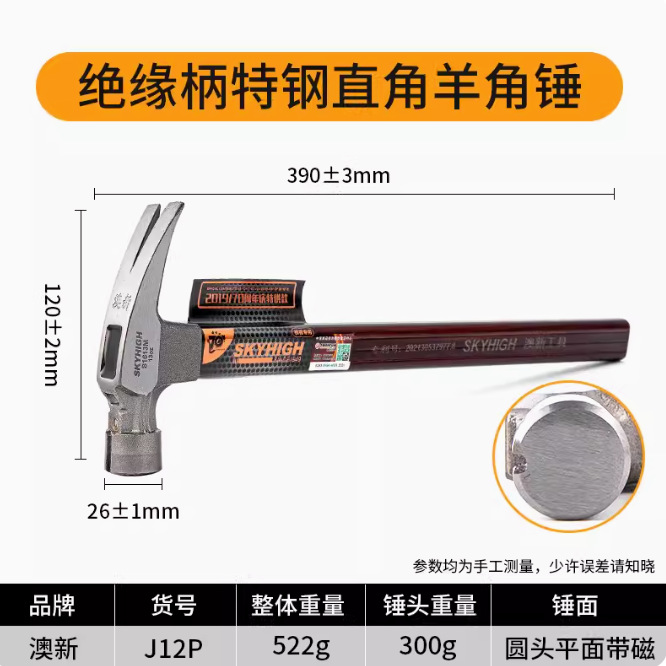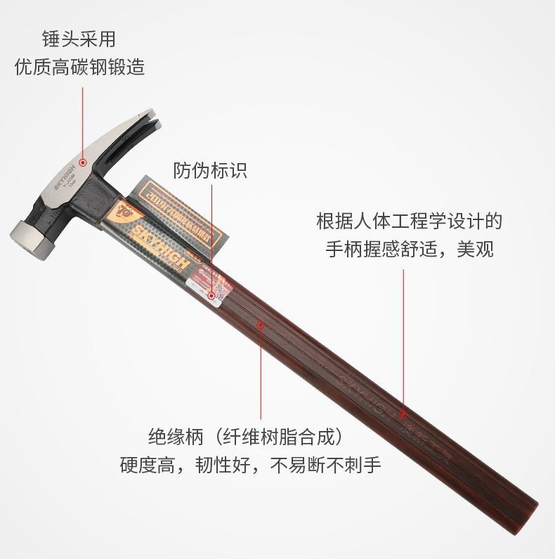 • J06M 둥근 머리, 자석 움푹 들어간 표면 0.5kg 망치 머리와 곡선 꼬리(복권 포함)