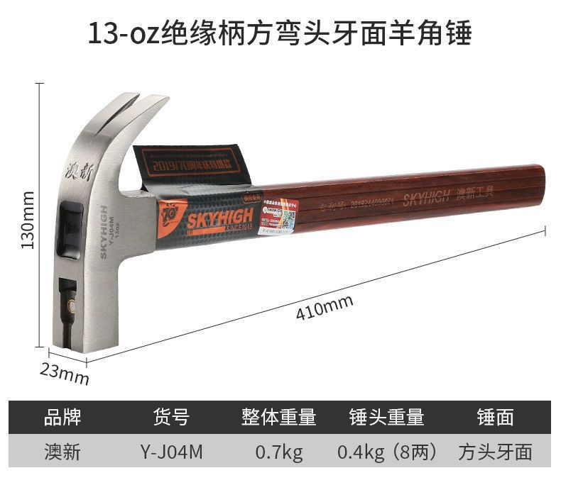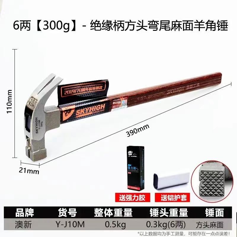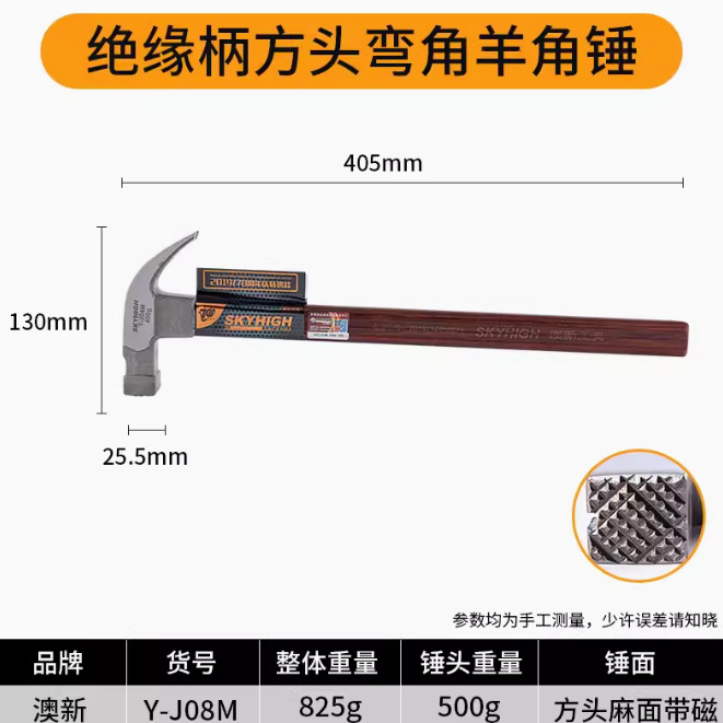 • J08M-자석 표면이 있는 사각형 헤드 0.5kg 해머 헤드 곡선형 테일