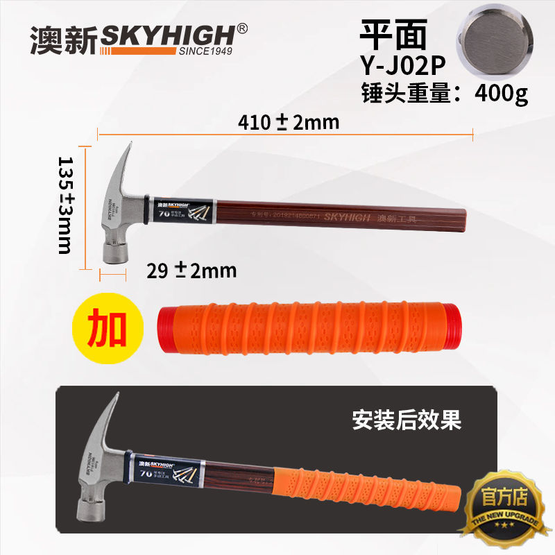 • J02M-자석 표면이 있는 둥근 머리 0.4kg 해머 헤드 직선 테일