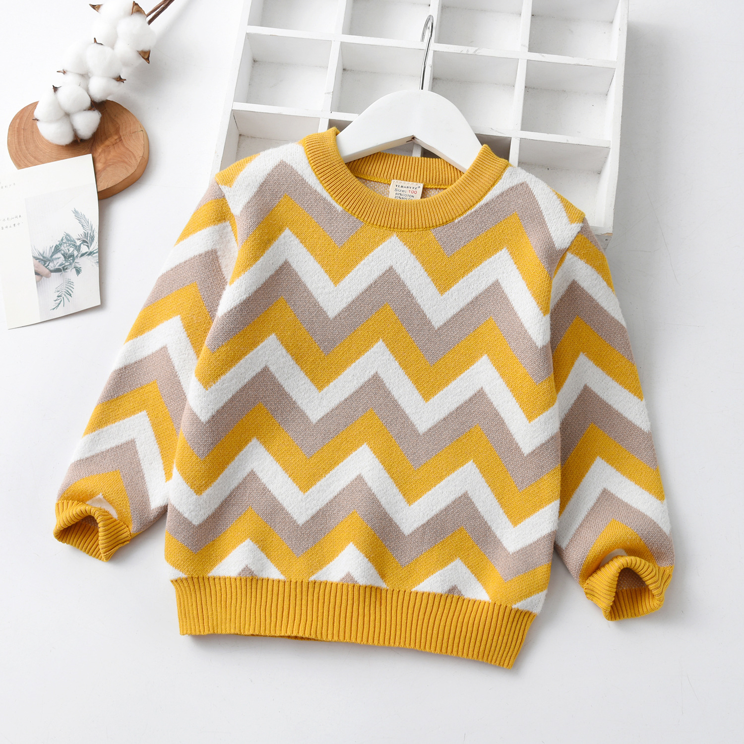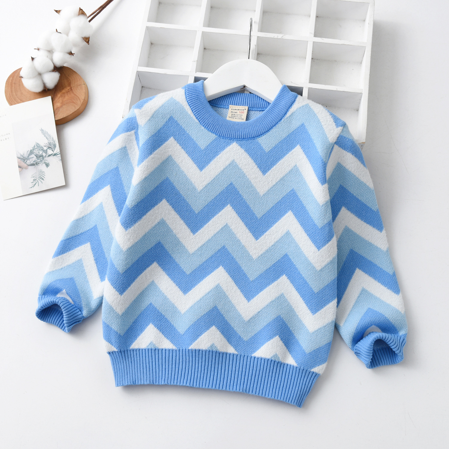 공장 직접 판매 어린이 물결 모양의 줄무늬 면 스웨터 니트웨어 아동 의류 스웨터 따뜻한 탑 공장 도매스토어 가기