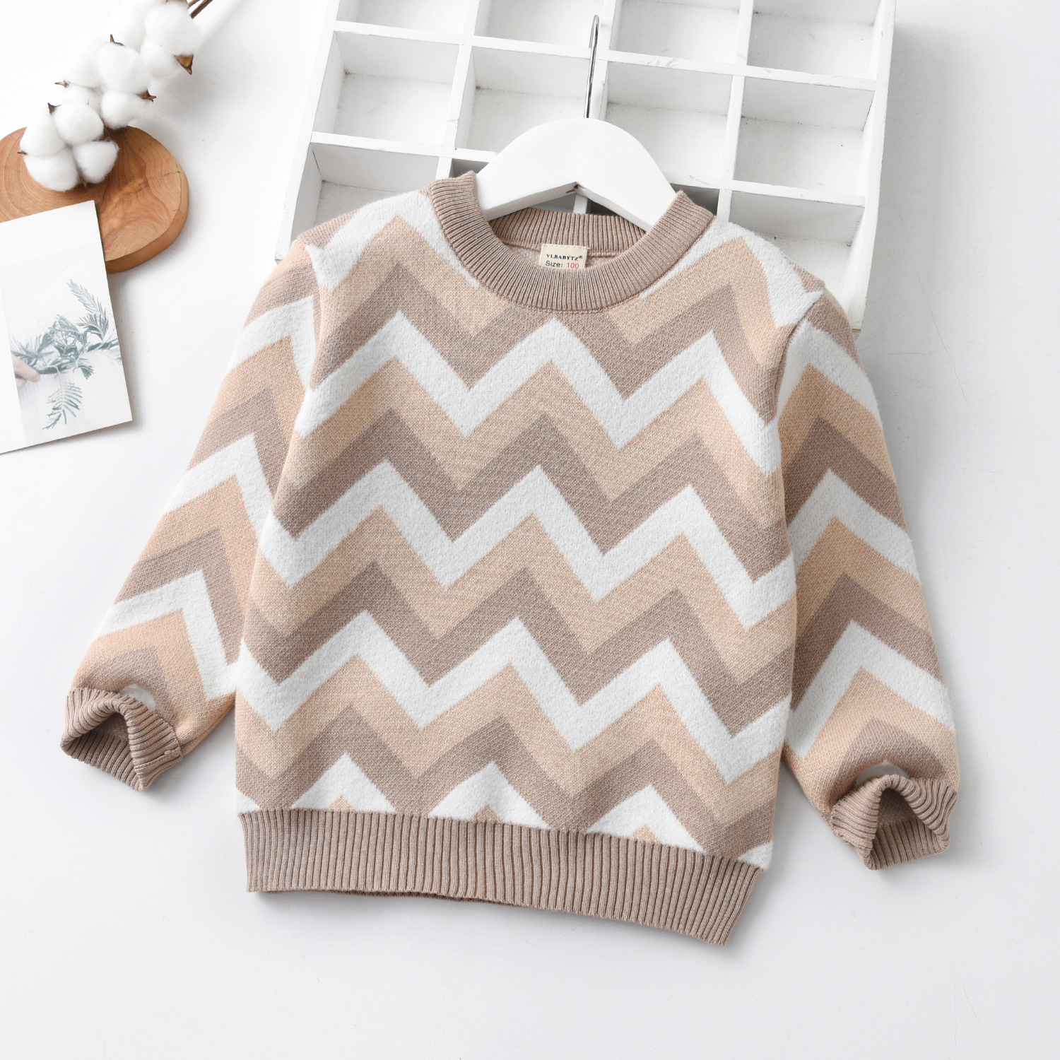 공장 직접 판매 어린이 물결 모양의 줄무늬 면 스웨터 니트웨어 아동 의류 스웨터 따뜻한 탑 공장 도매