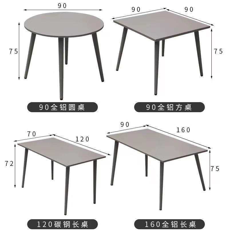 • 샴페인 컬러 90CM 사각 플레이트 기둥 탄소강 사각 테이블 + 알루미늄 의자 4개