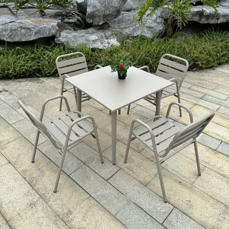 • 샴페인 컬러 80CM 테이퍼드 탄소강 사각 테이블 + 알루미늄 의자 4개