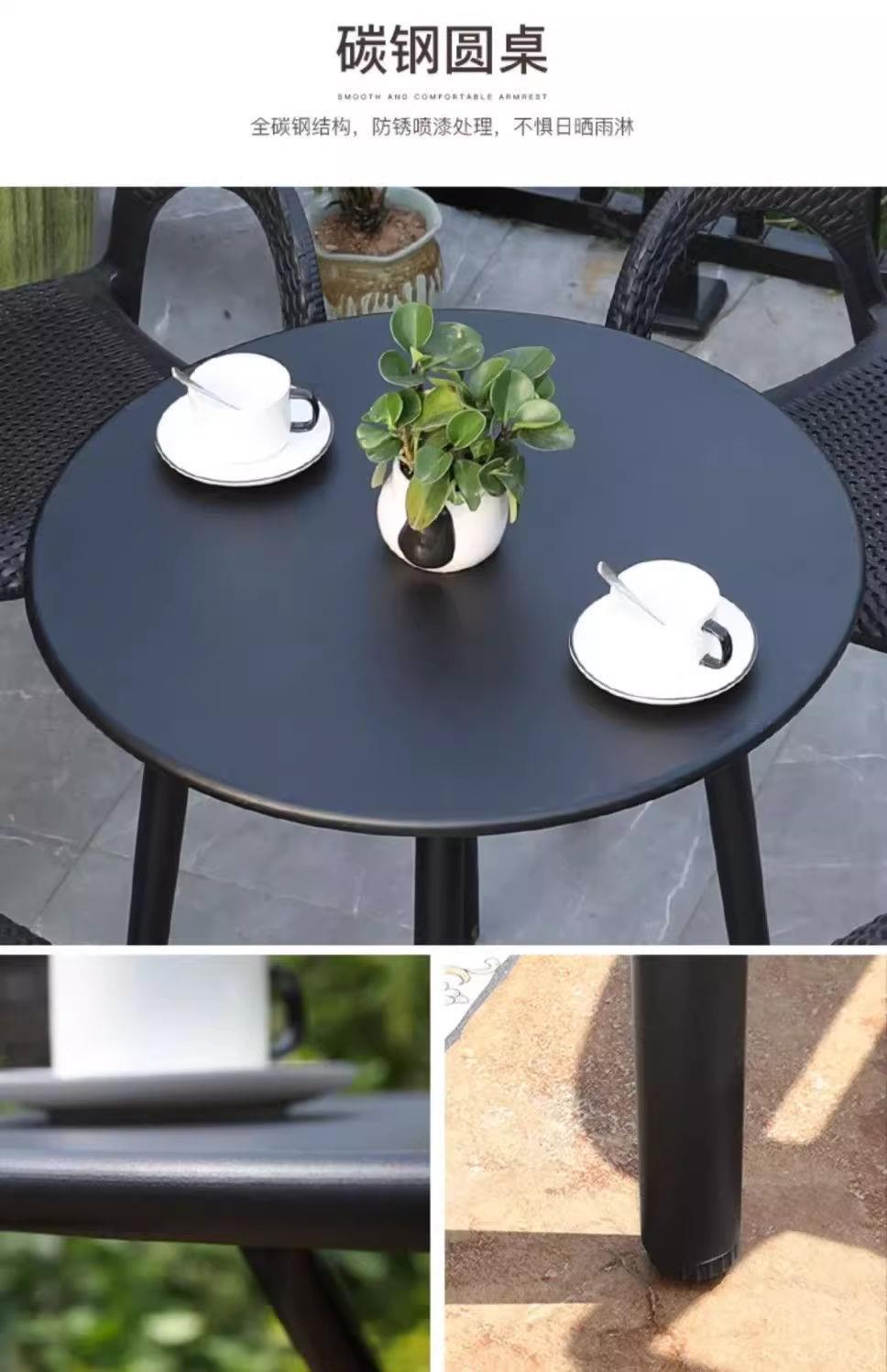 야외 인터넷 연예인 테이블과 의자 세트 발코니 레저 커피 밀크티 숍 탄소강 원형 테이블 레저 공간 안뜰 야외 식탁스토어 가기