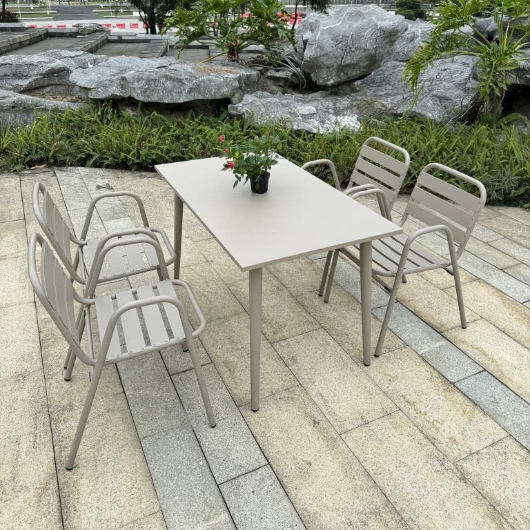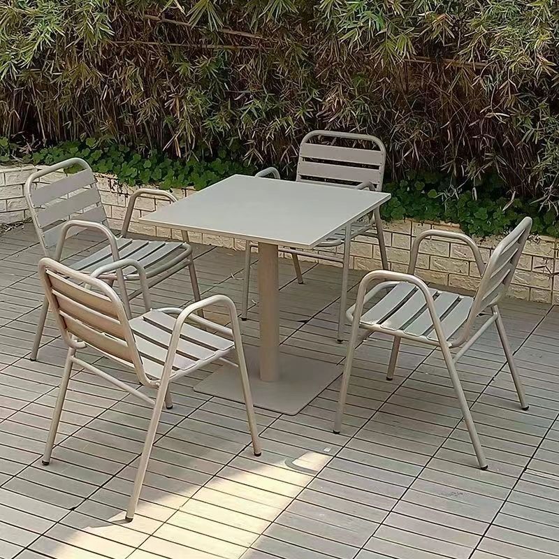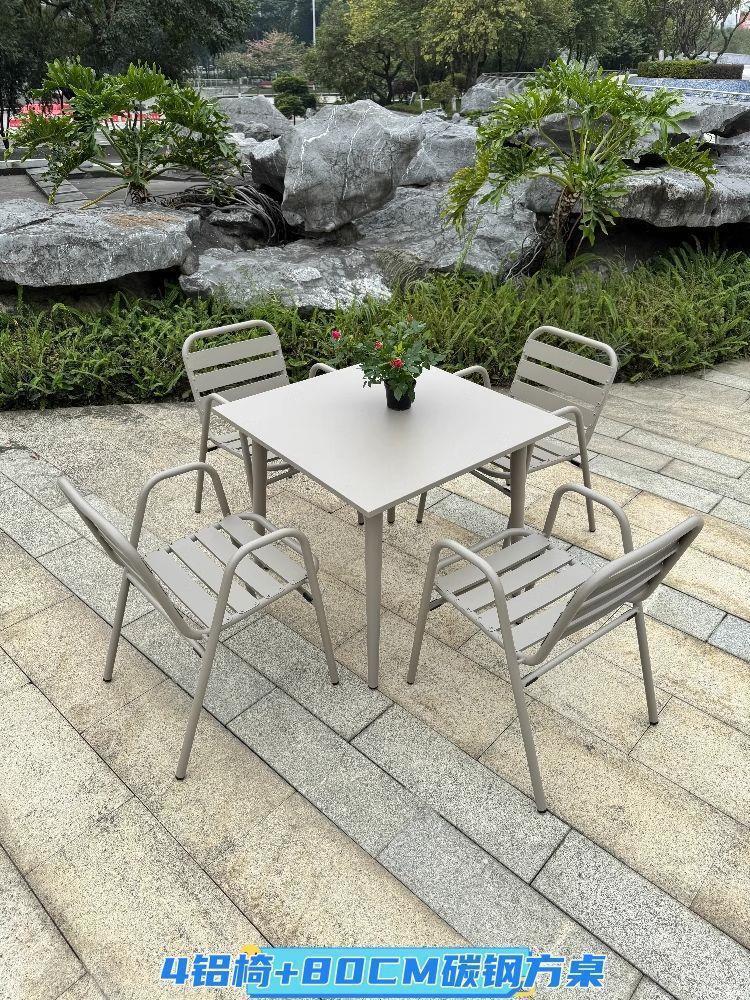 • 샴페인 컬러 80CM 사각 플레이트 기둥 탄소강 사각 테이블 + 알루미늄 의자 4개