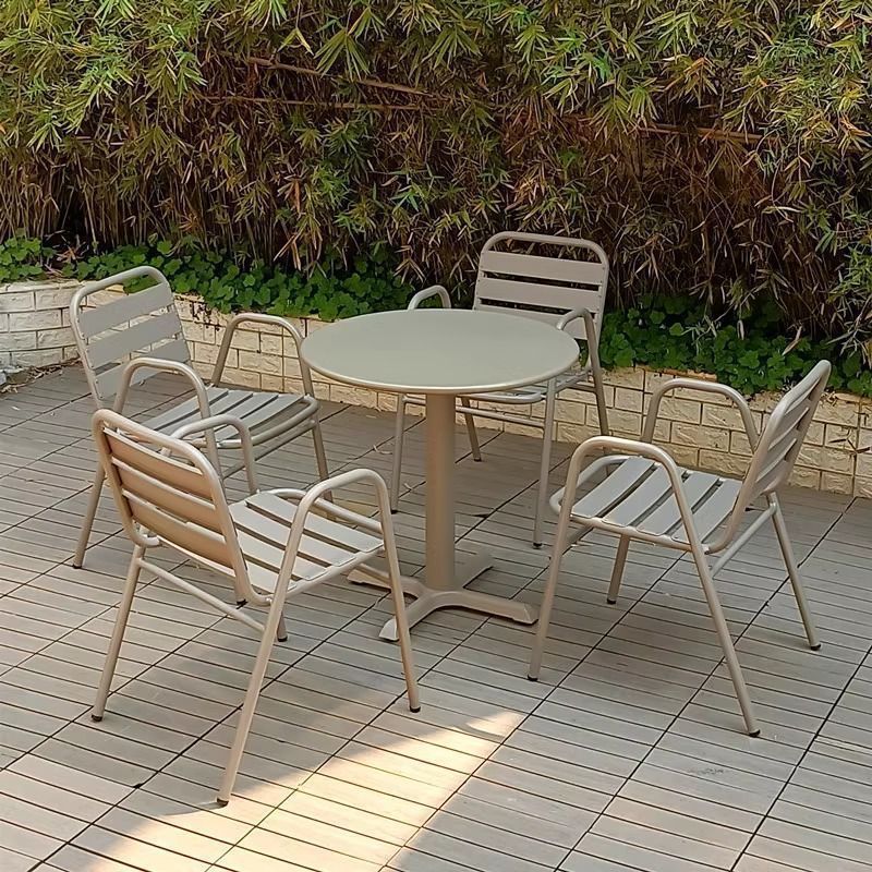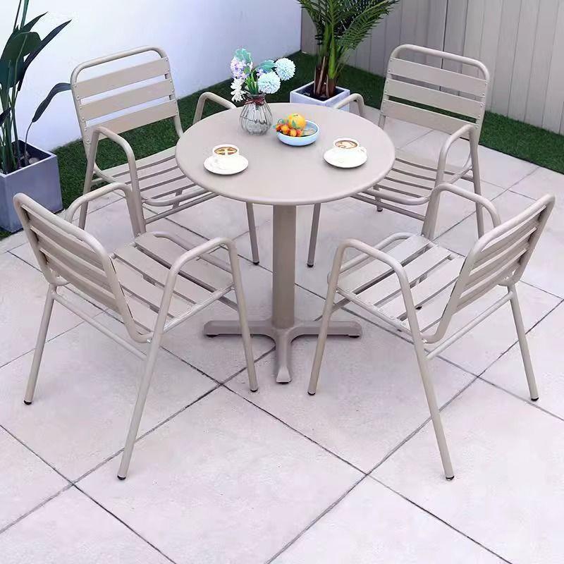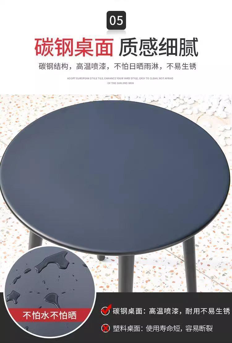 야외 인터넷 연예인 테이블과 의자 세트 발코니 레저 커피 밀크티 숍 탄소강 원형 테이블 레저 공간 안뜰 야외 식탁