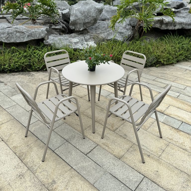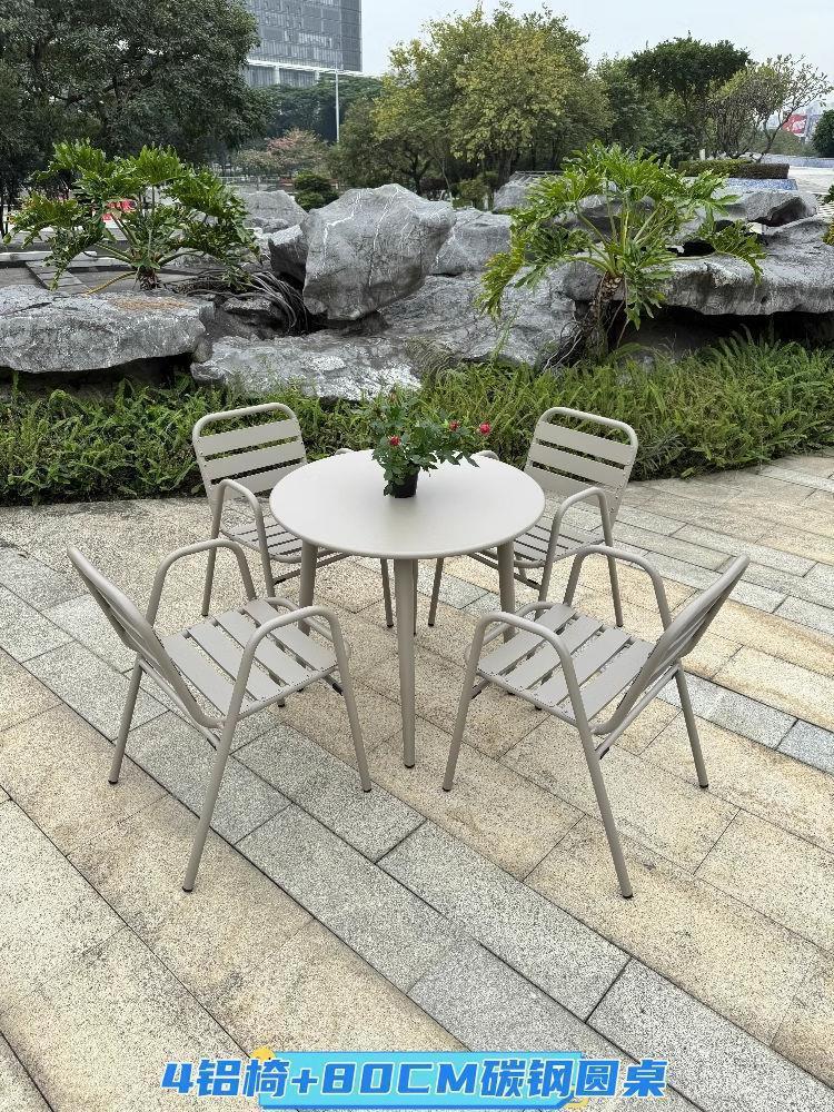 • 샴페인 컬러 80CM 테이퍼드 탄소강 원형 테이블 + 알루미늄 의자 4개
