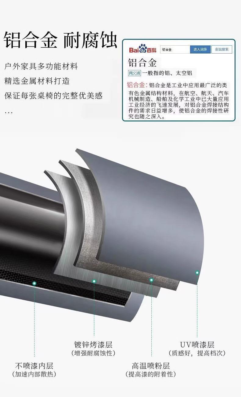 • 검정색 80CM 디스크 기둥 탄소강 원형 테이블 + 알루미늄 의자 4개