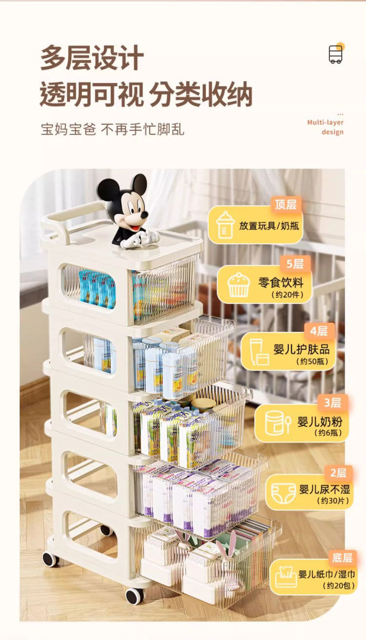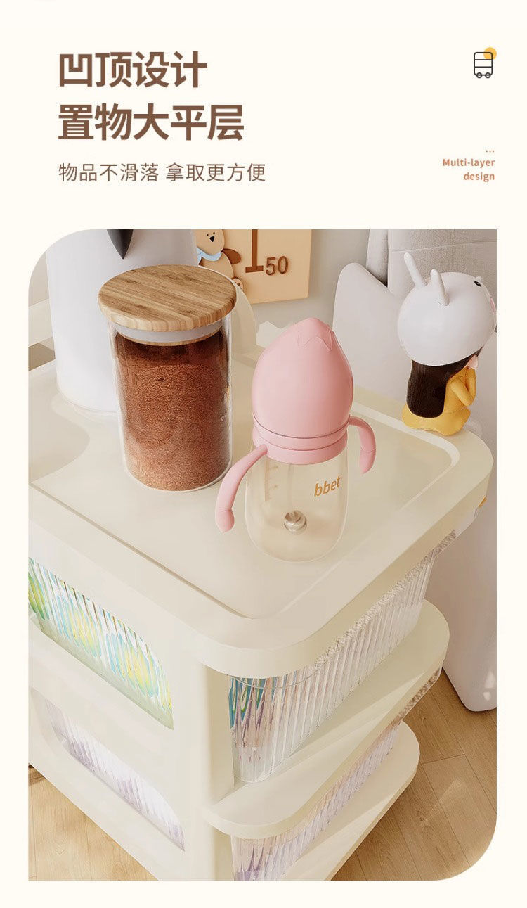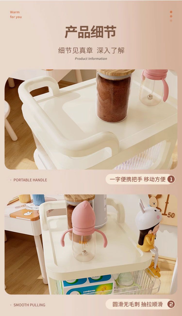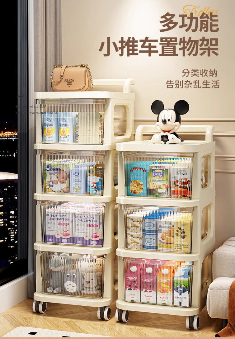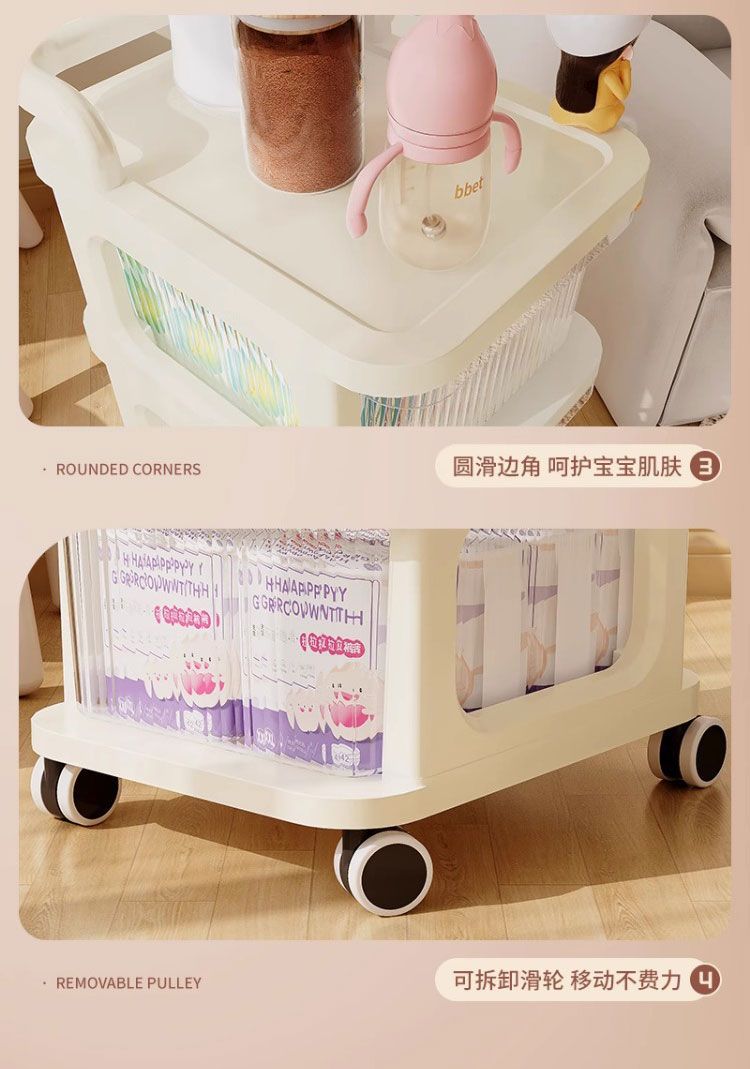 트롤리 크림 스타일 스낵 보관 랙 아기 용품 보관 바닥 스탠딩 모바일 아기 홈 장난감 보관 랙