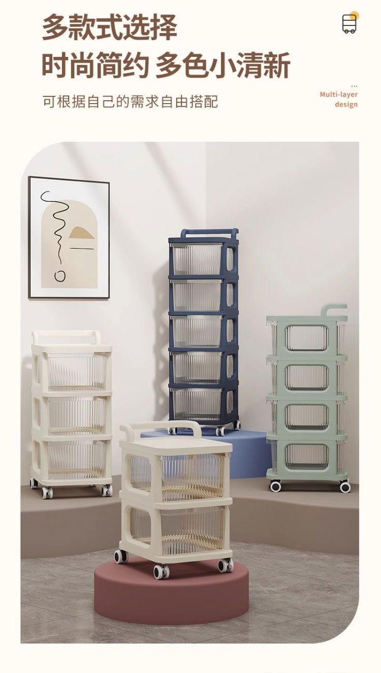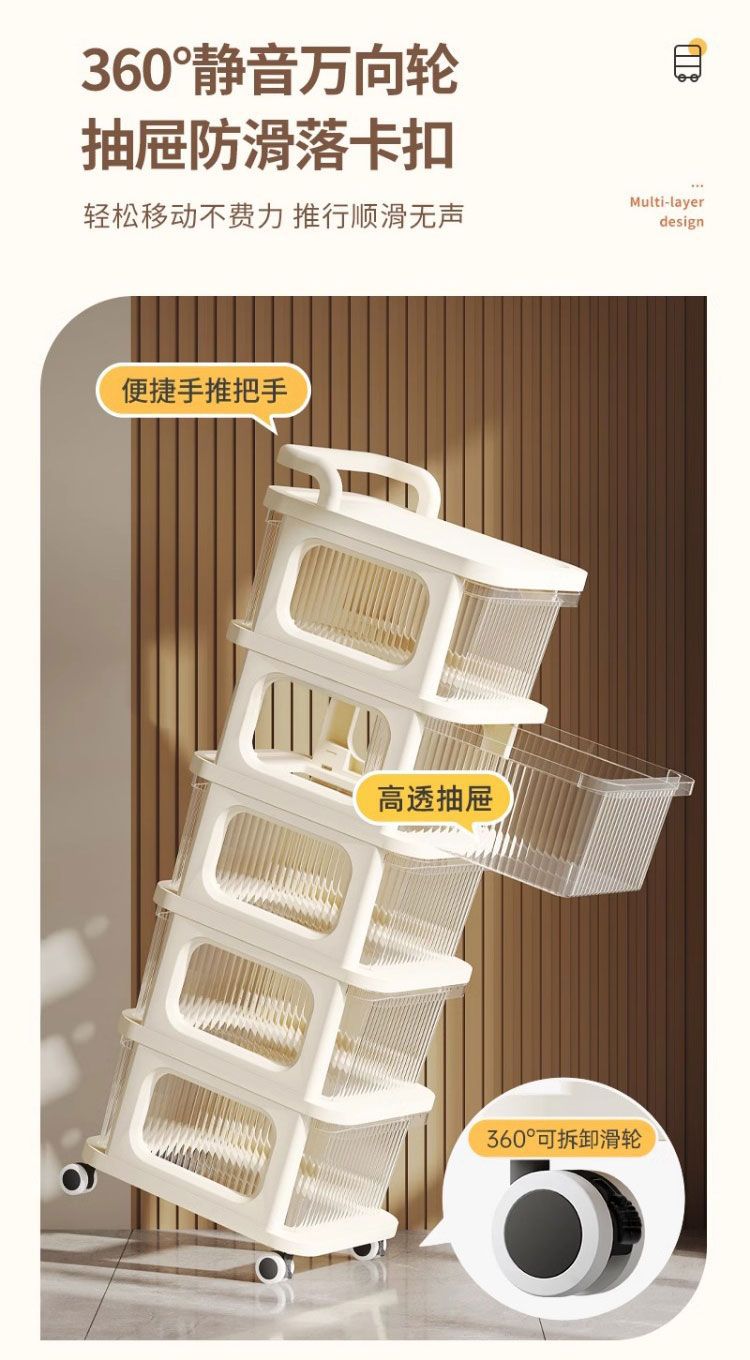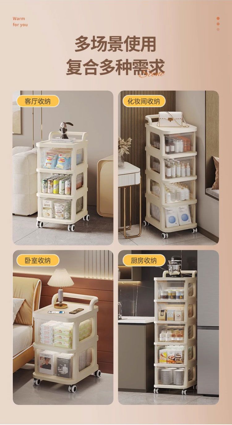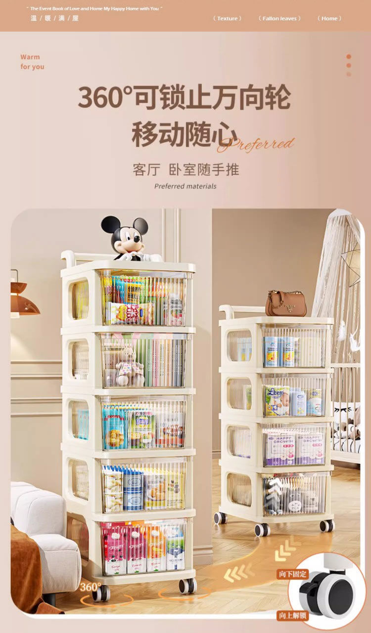 트롤리 크림 스타일 스낵 보관 랙 아기 용품 보관 바닥 스탠딩 모바일 아기 홈 장난감 보관 랙
