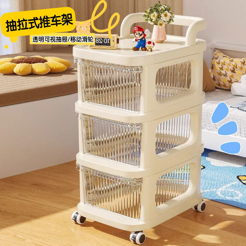 트롤리 크림 스타일 스낵 보관 랙 아기 용품 보관 바닥 스탠딩 모바일 아기 홈 장난감 보관 랙스토어 가기