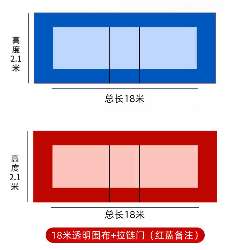 • 18m 투명천 + 지퍼도어 (빨간색, 파란색 비고)