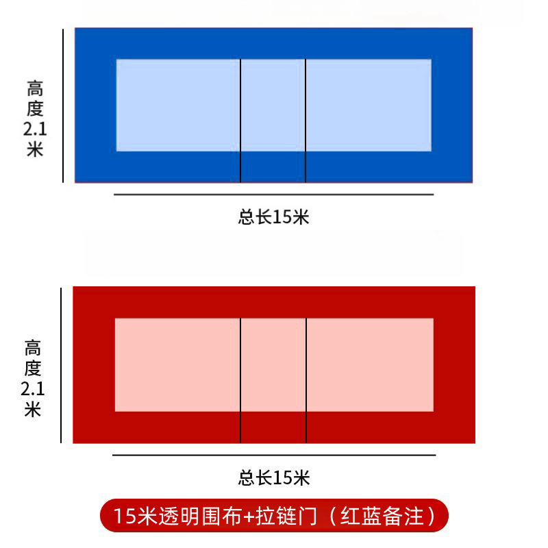 • 15m 투명천 + 지퍼도어 (빨간색, 파란색 비고)
