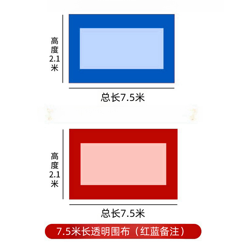 • 7.5m 투명천(빨간색과 파란색 비고)