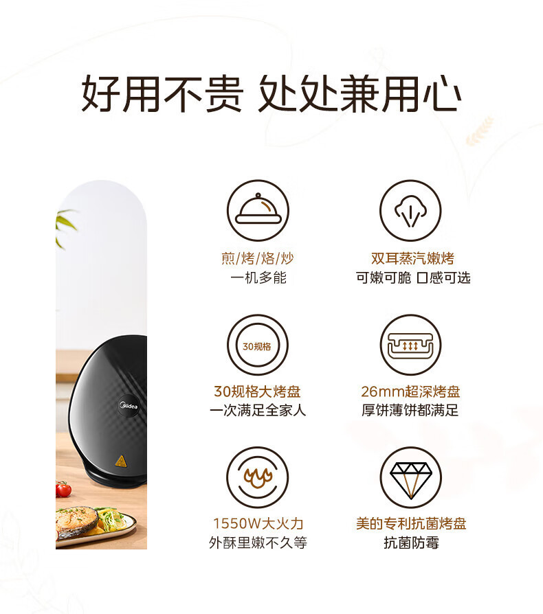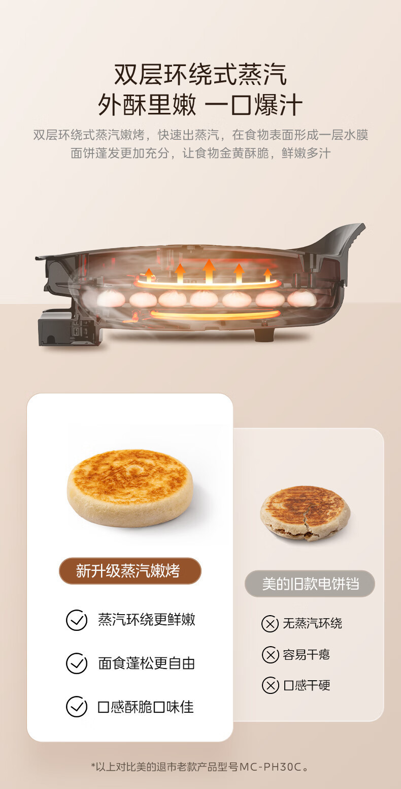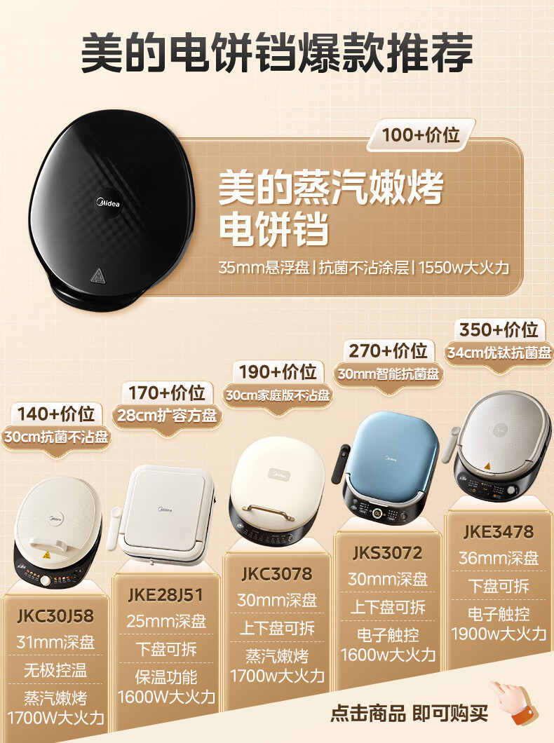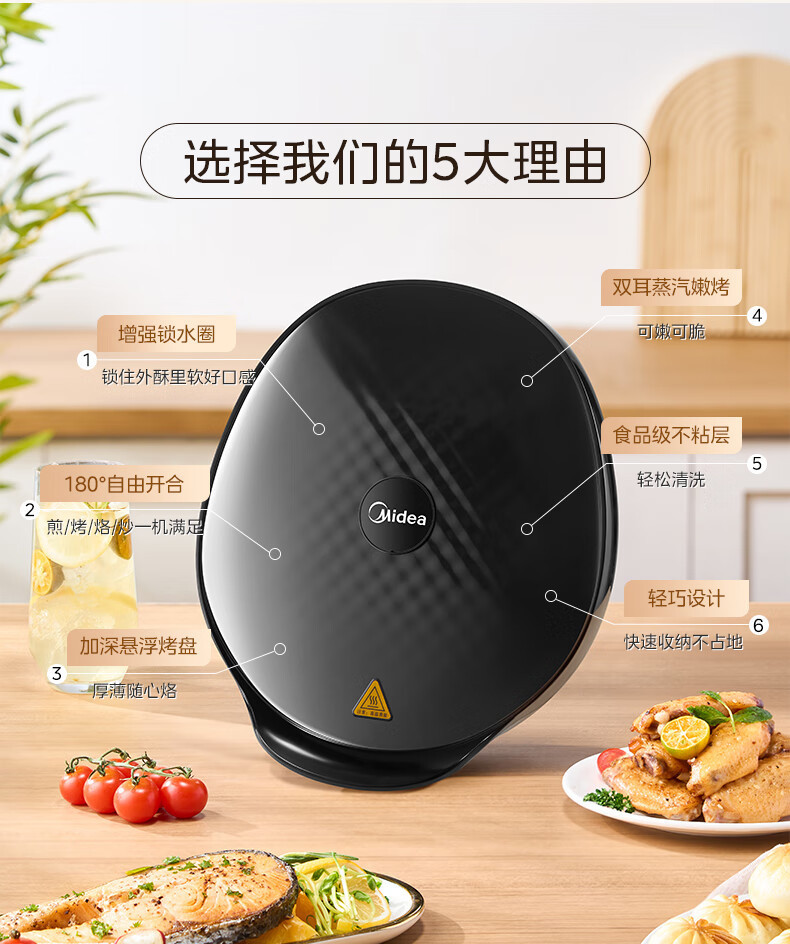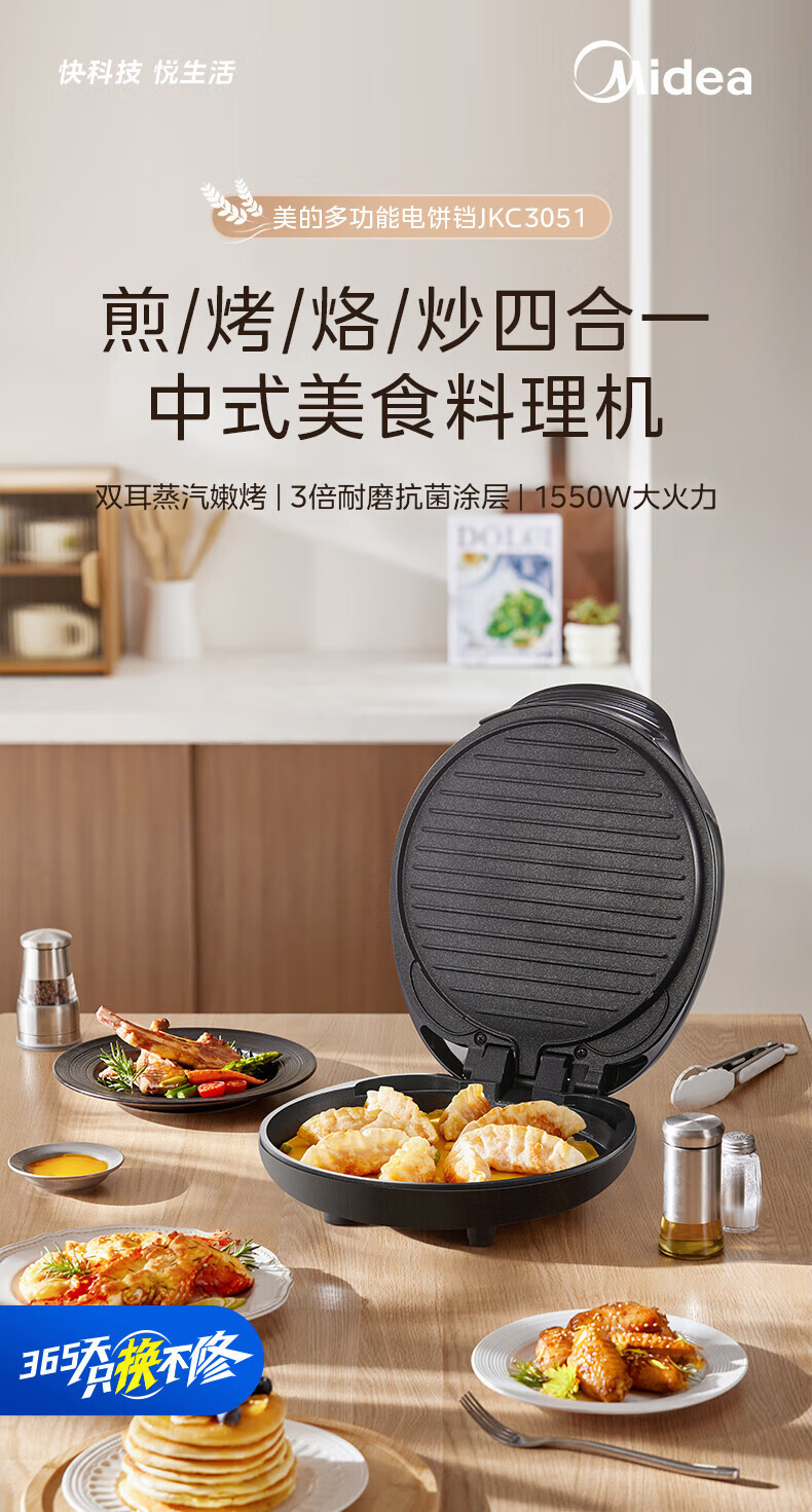 Midea 전기 베이킹 팬 MC-JKC3051 가정용 베이킹 팬케이크 팬 샌드위치 아침 식사 기계 스팀 베이킹 팬스토어 가기