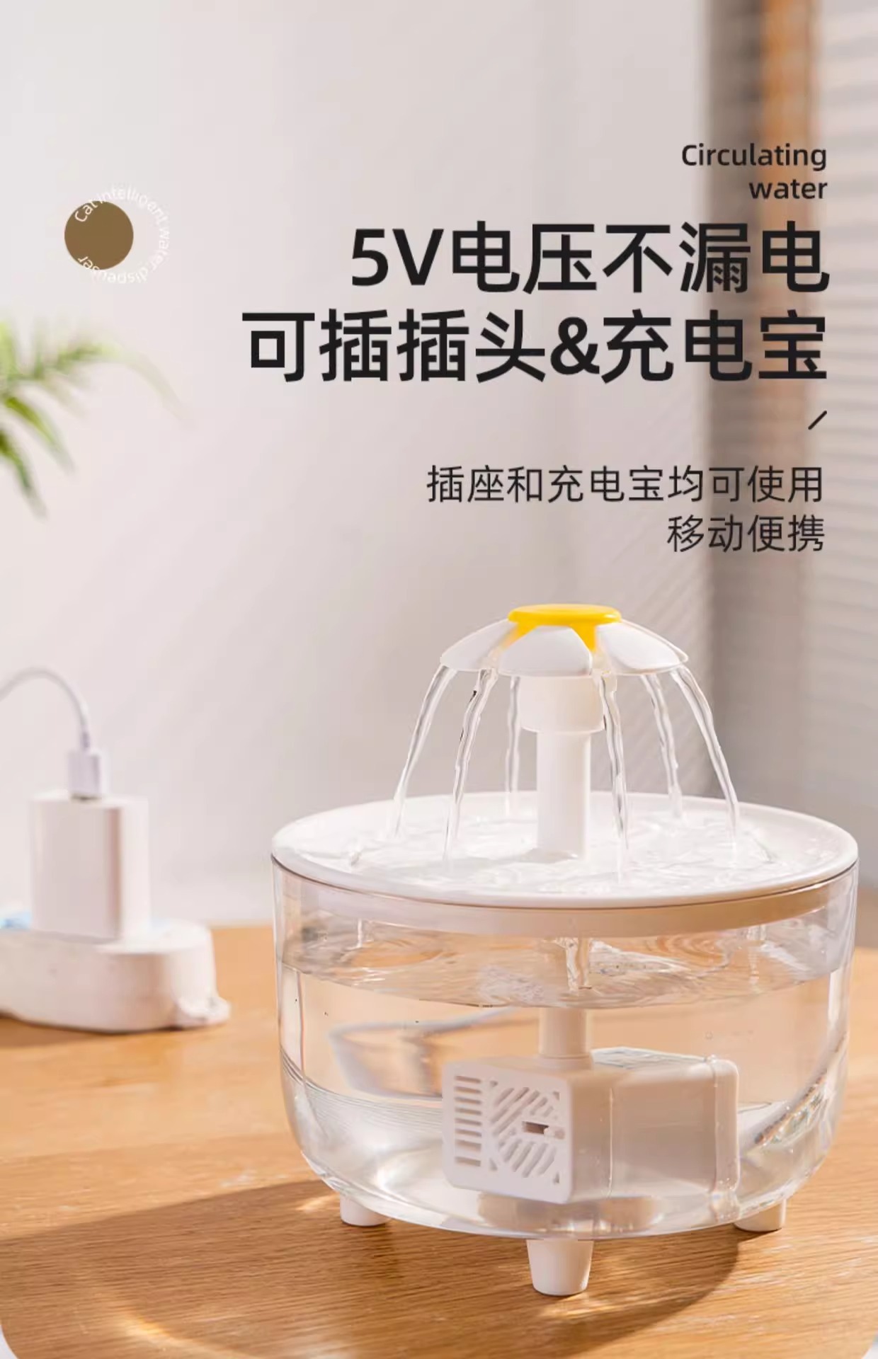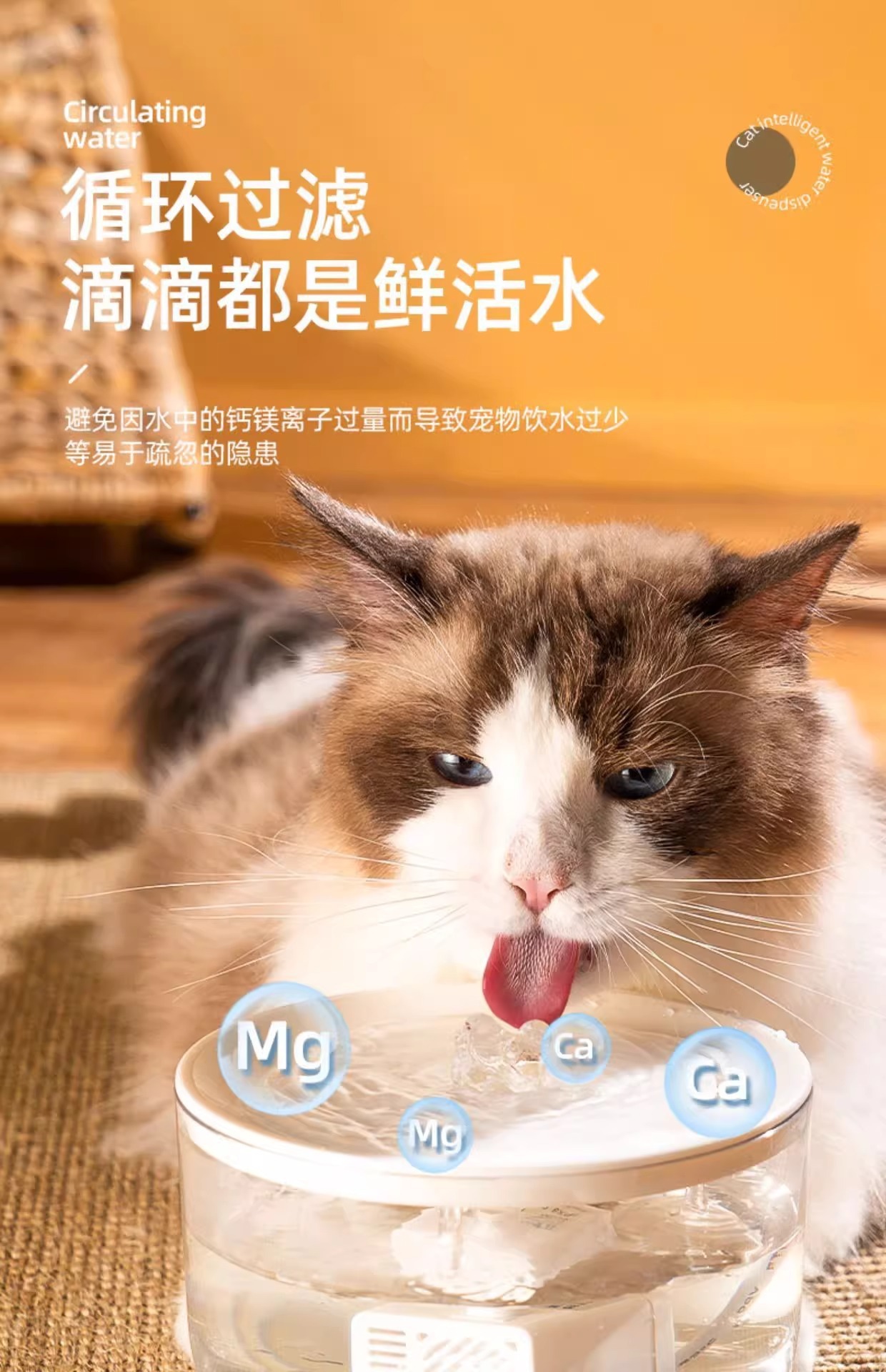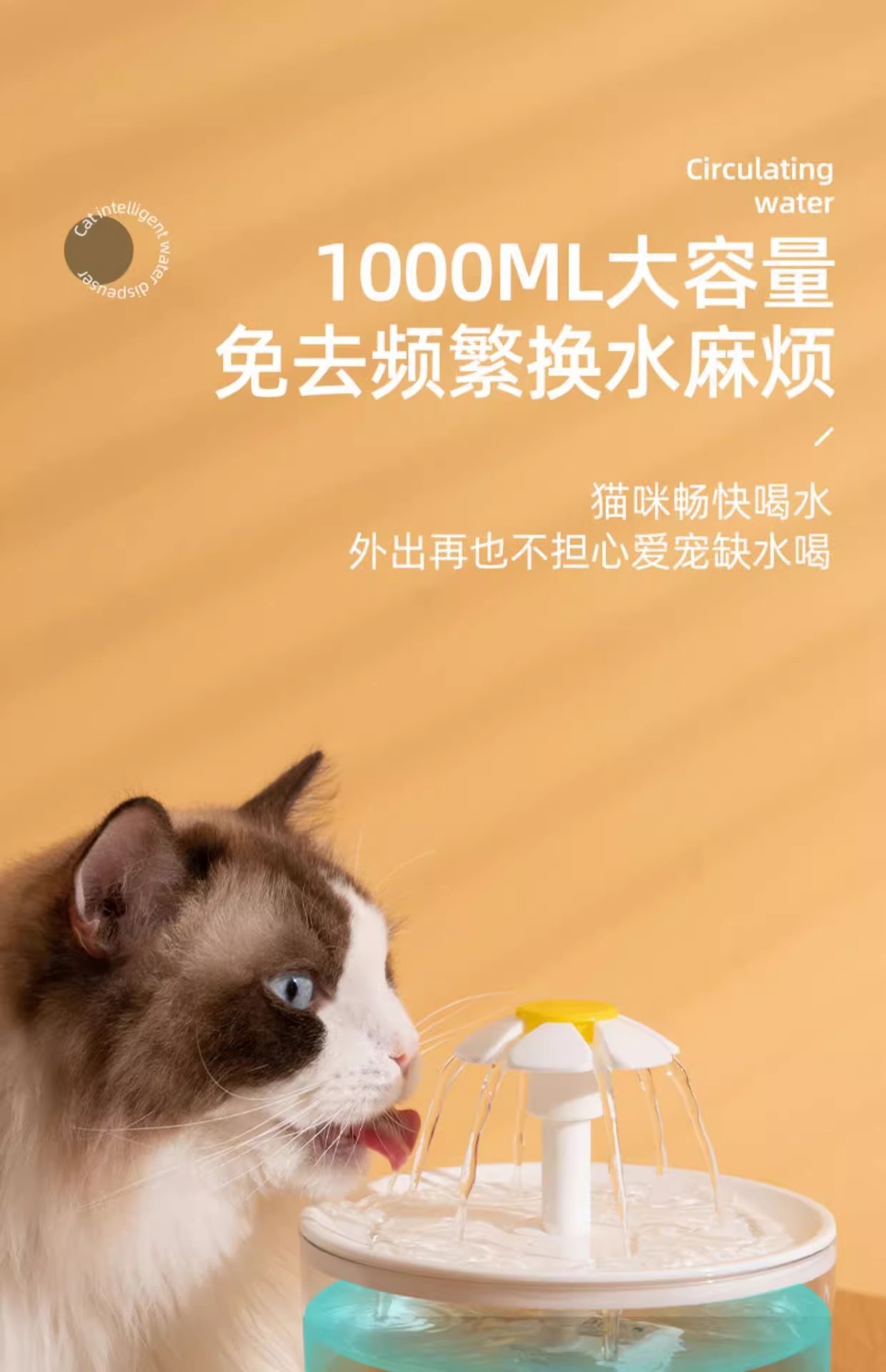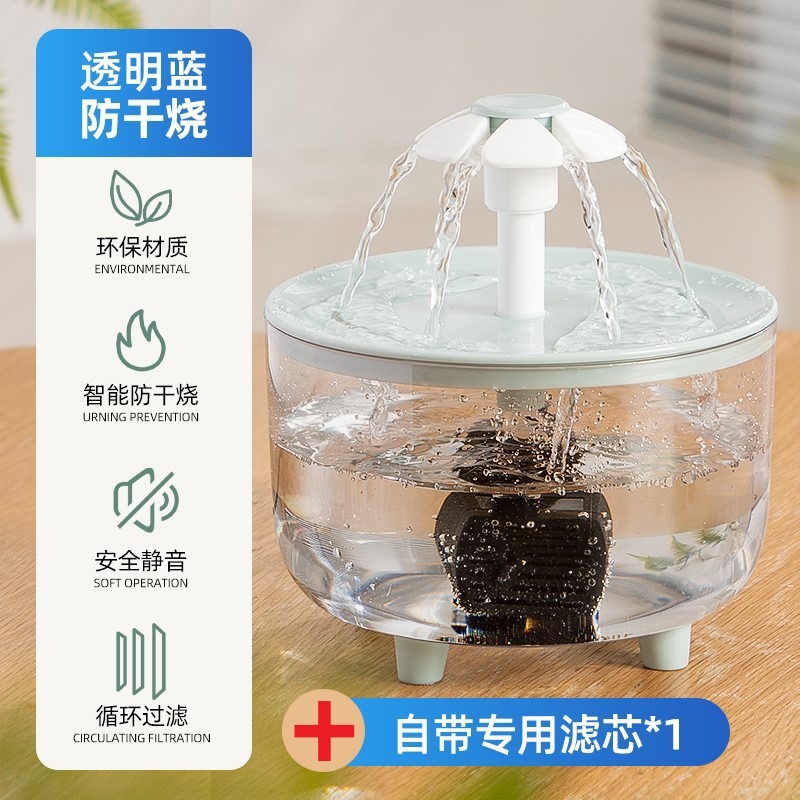 • 꽃고양이 정수기 [업그레이드된 건식방지 투명블루커버] 지능형 무소음, 누수 없음