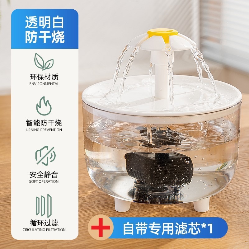 • 꽃고양이 정수기 [투명백색커버] 돌이 생기지 않는 흐르는 물