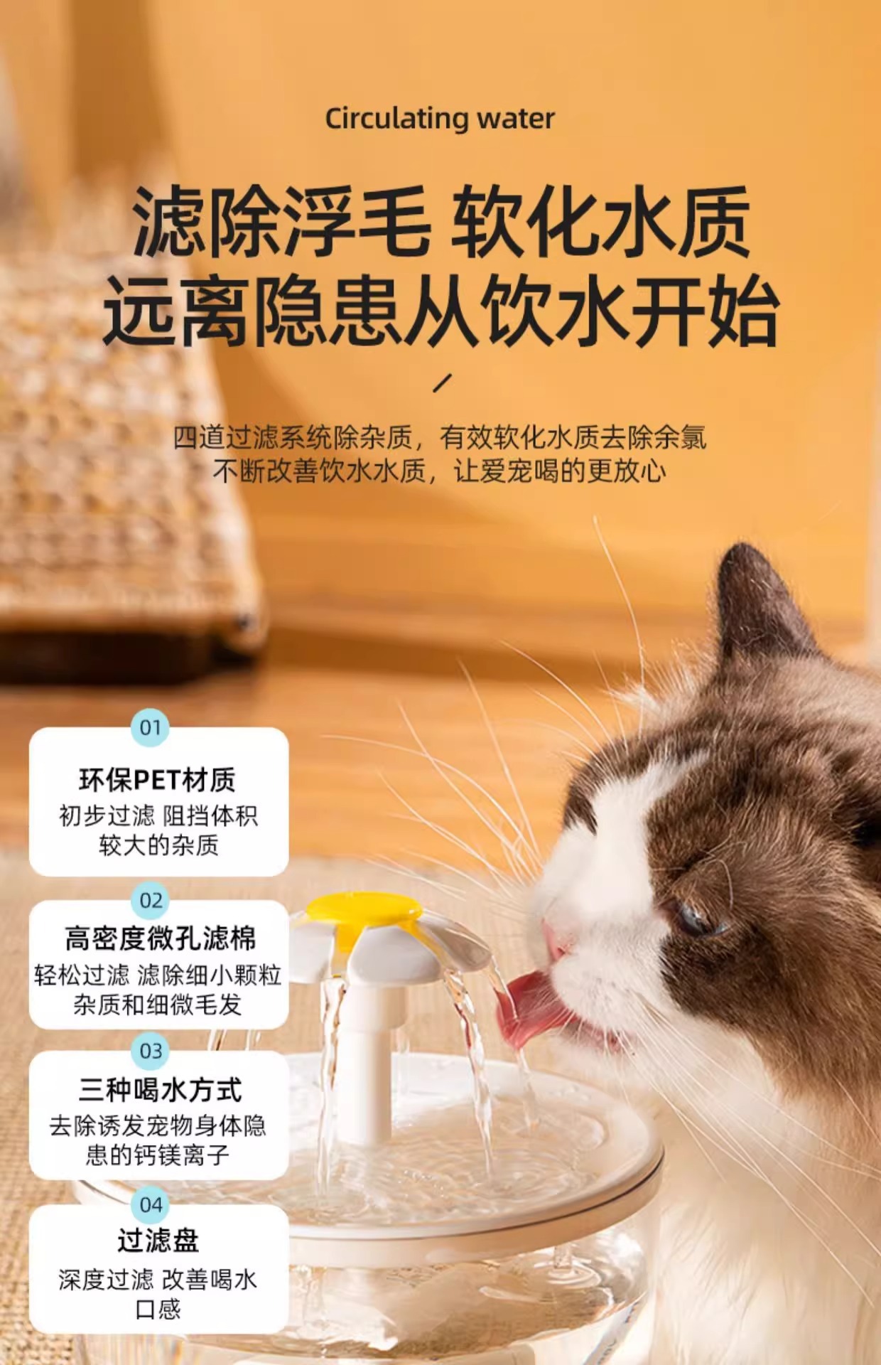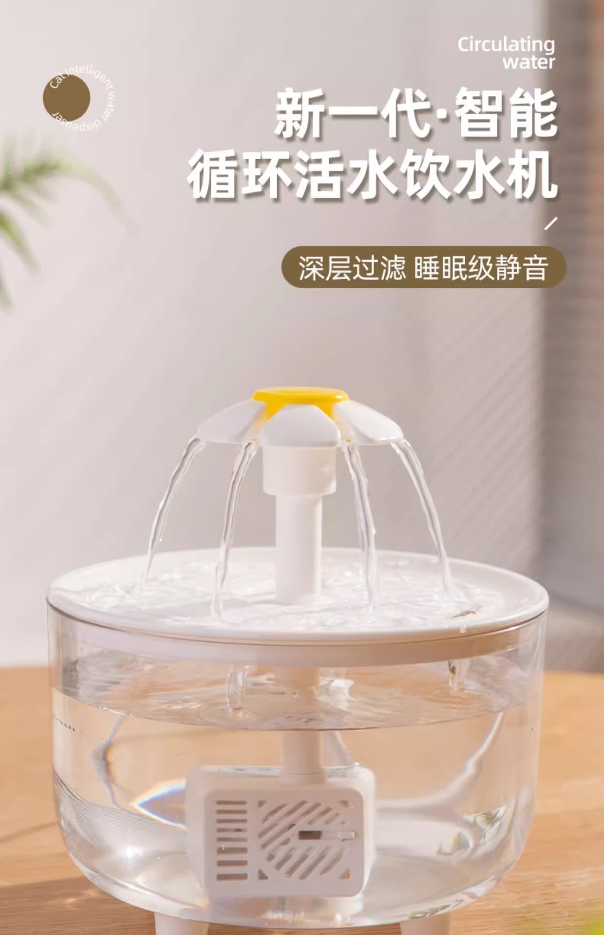 • 꽃고양이 정수기 [건조방지 투명백커버 업그레이드] 지능형 무소음, 누수 없음
