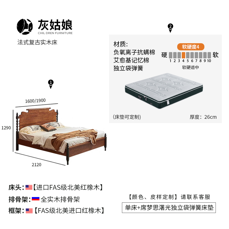 • [★◇★◇]【FAS级北美红橡木】单床+席梦思瑞喜独立袋黄麻6D床垫[★◇★◇]
