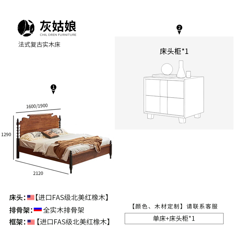 • [★◇★◇]【FAS级北美红橡木】单床+床头柜*1[★◇★◇]