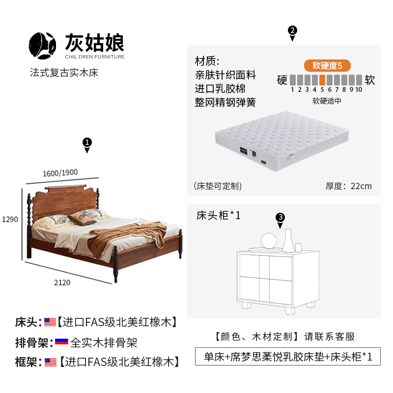 • [★◇★◇]【FAS级北美红橡木】单床+席梦思葇悦乳胶床垫+床头柜*1[★◇★◇]