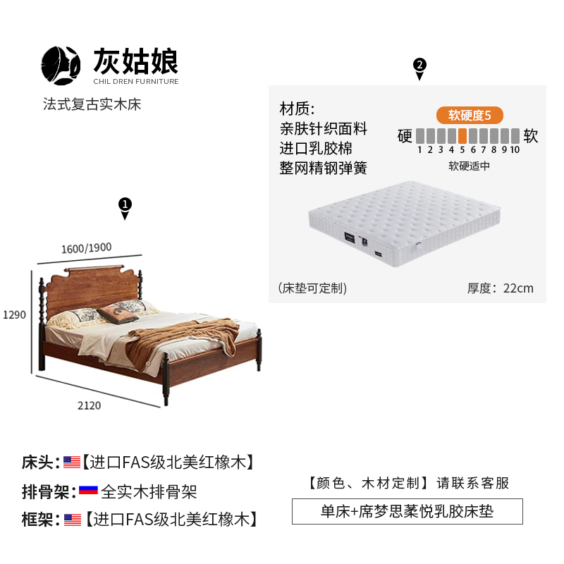 • [★◇★◇]【FAS级北美红橡木】单床+席梦思葇悦乳胶床垫[★◇★◇]