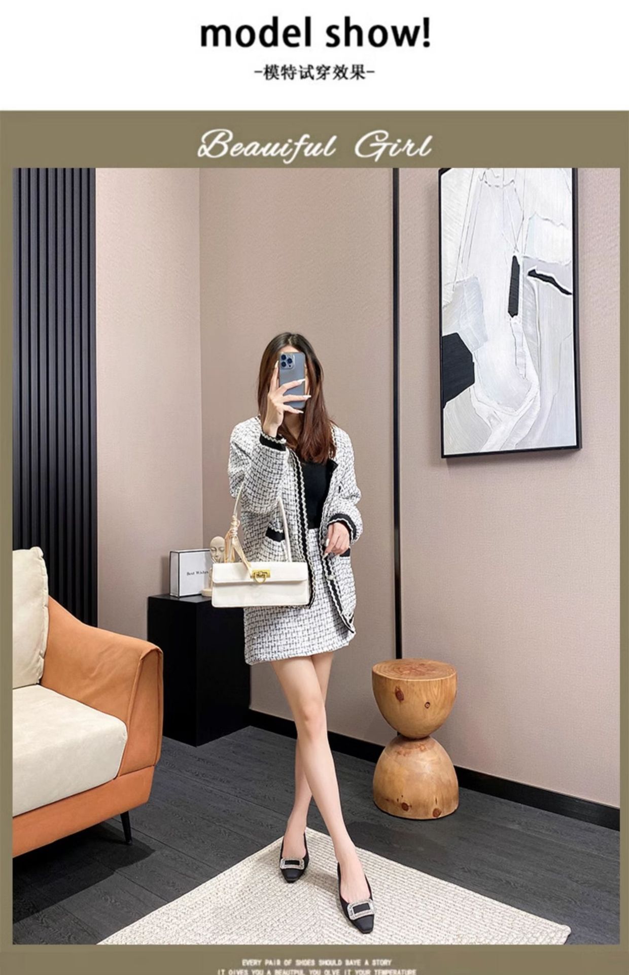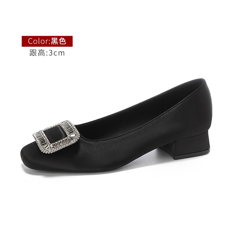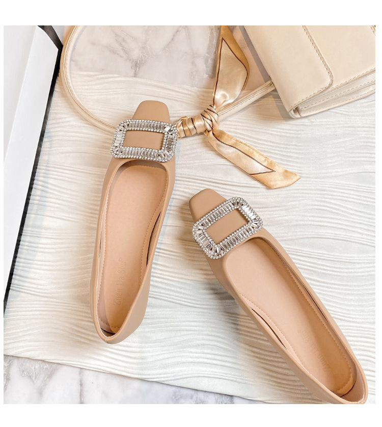 양가죽 버전 ~ 여성용 스퀘어토 플랫슈즈 2025 신형 스퀘어버튼 라인스톤 스커트와 조수슈즈 대형 여성화.