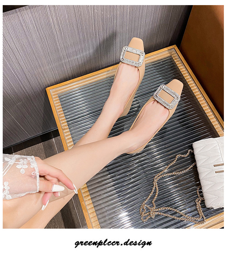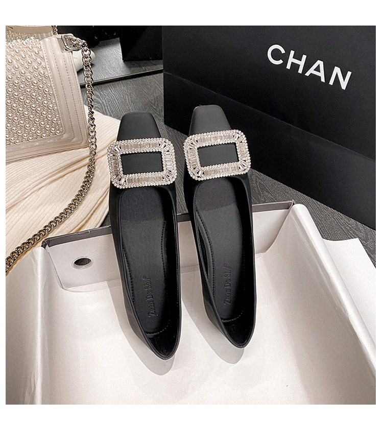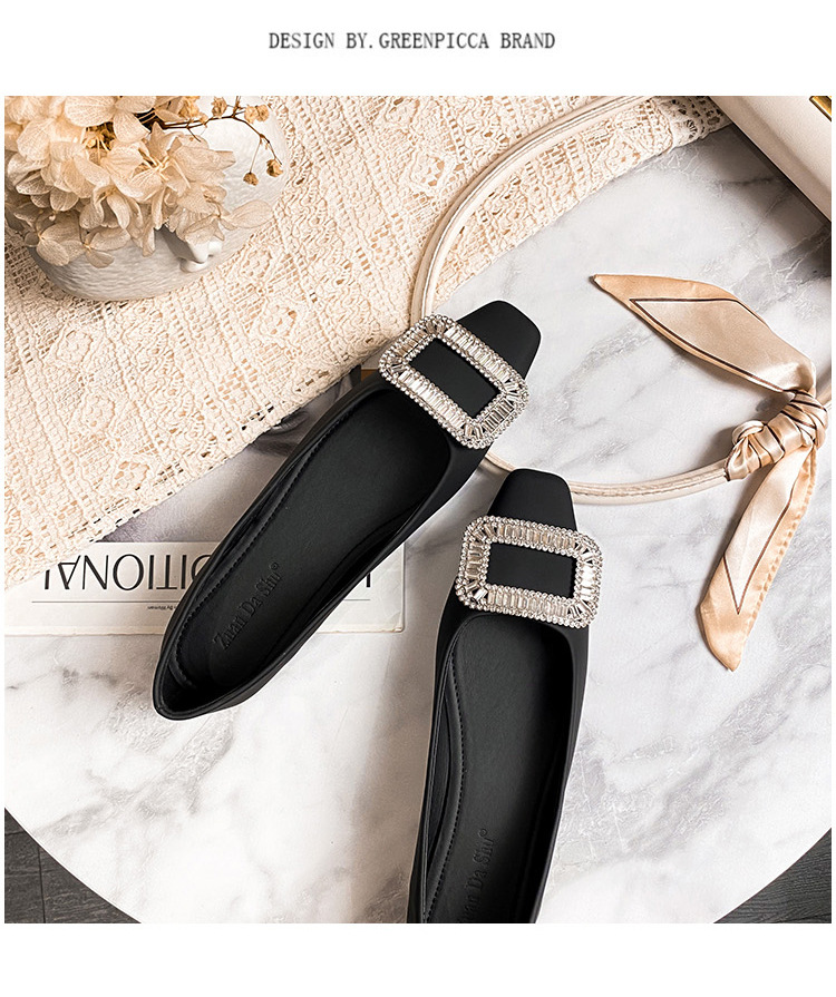 양가죽 버전 ~ 여성용 스퀘어토 플랫슈즈 2025 신형 스퀘어버튼 라인스톤 스커트와 조수슈즈 대형 여성화.스토어 가기