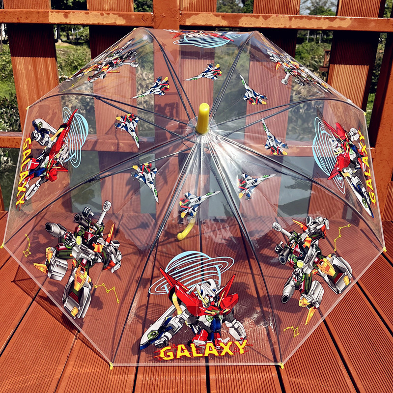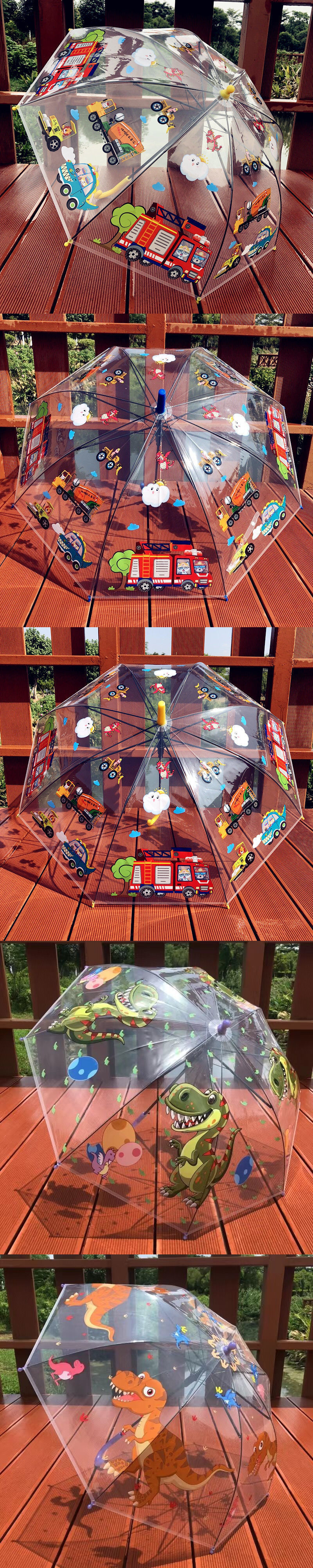 새로운 소방차 투명 어린이 우산 유치원 귀여운 만화 스트레이트 핸들 트랜스포머 학생 소년 우산