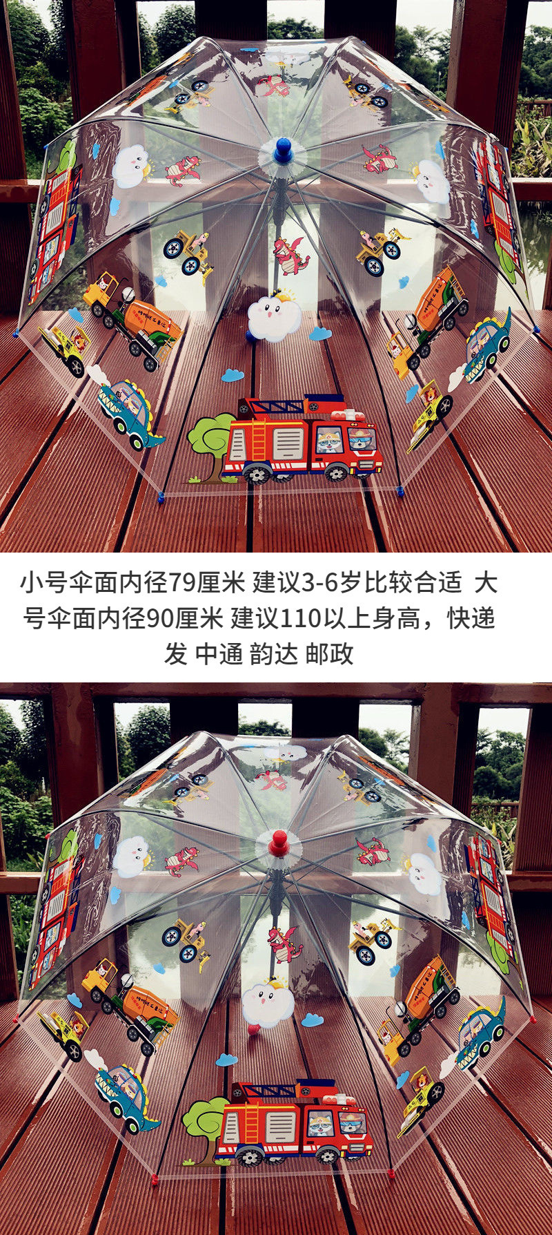새로운 소방차 투명 어린이 우산 유치원 귀여운 만화 스트레이트 핸들 트랜스포머 학생 소년 우산스토어 가기