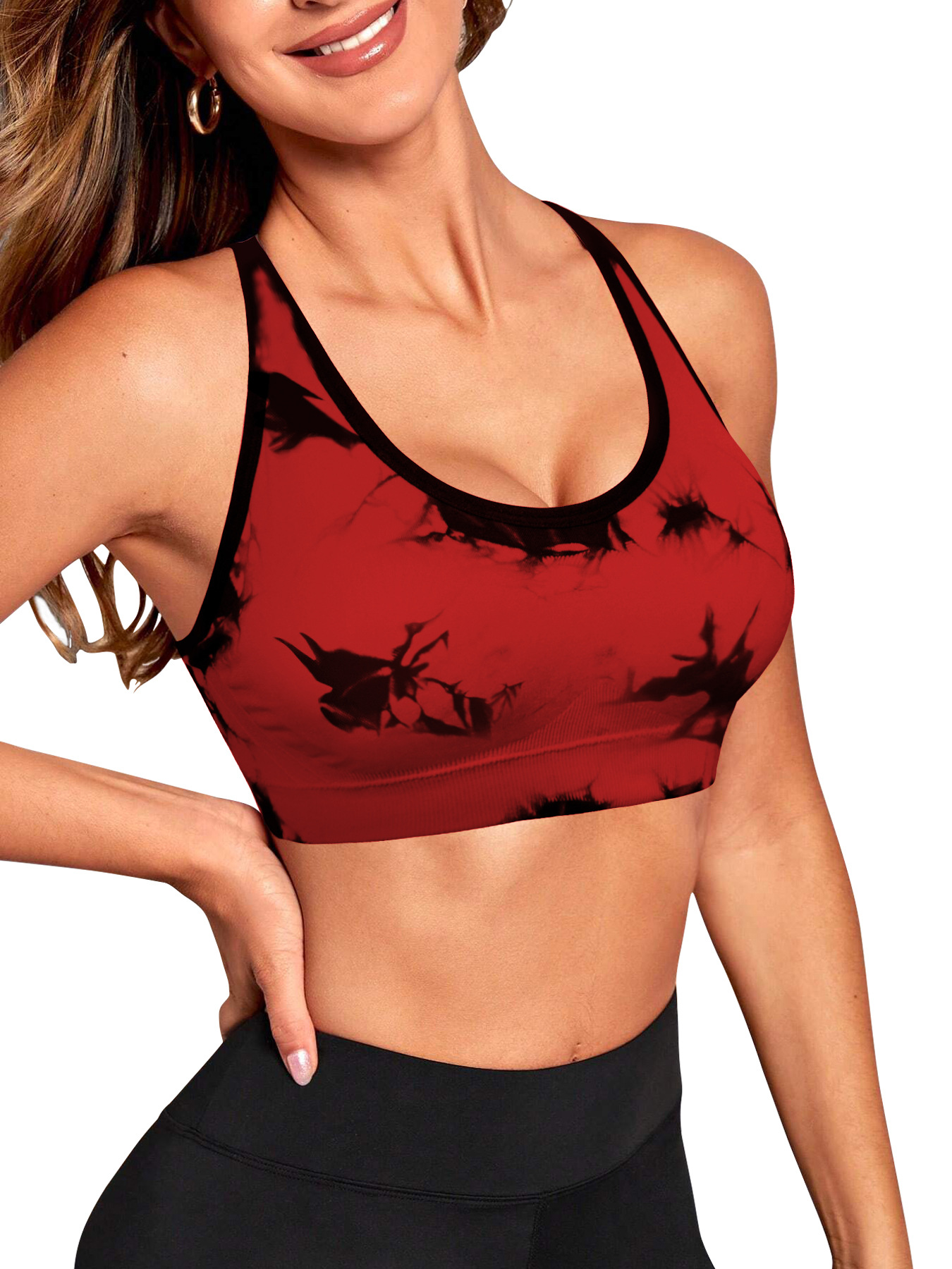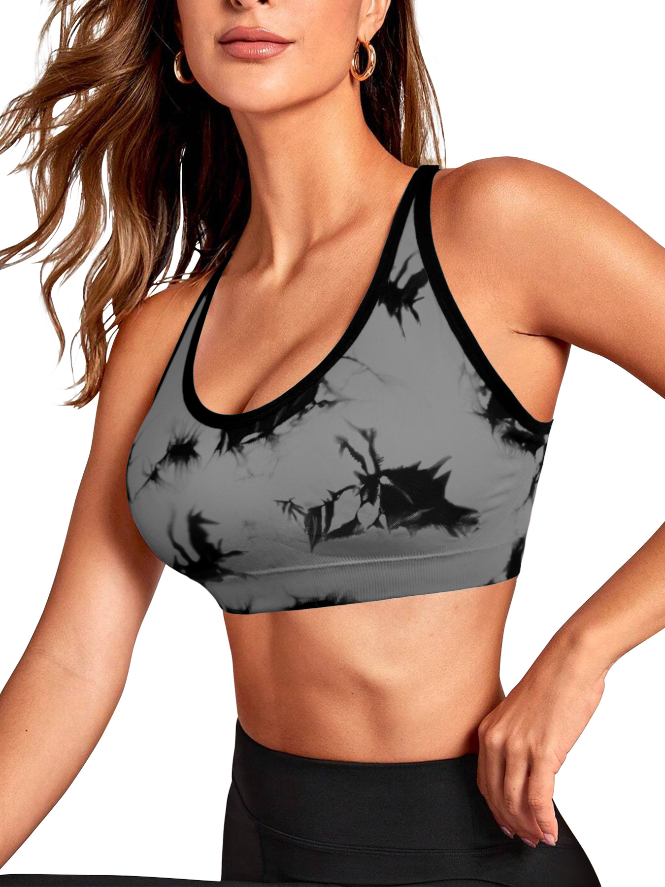 국경 간 대외 무역 요가 타이 염색 스포츠 브라 속옷 백리스 로우 넥 소프트 안감 고정 컵 충격 방지 대형 사이즈스토어 가기