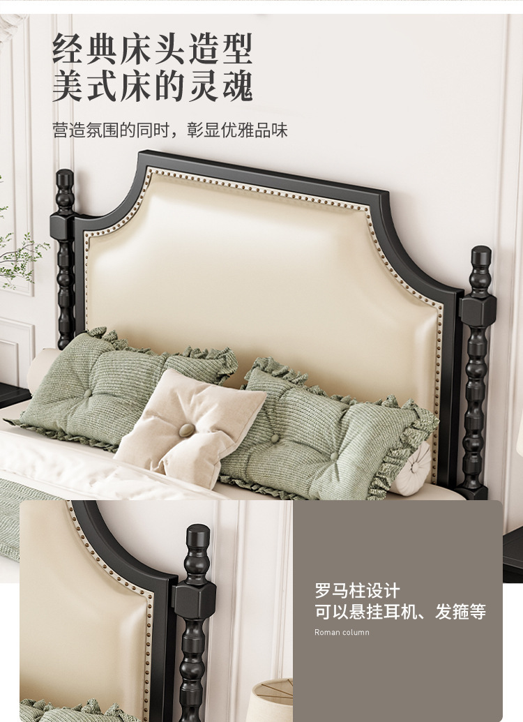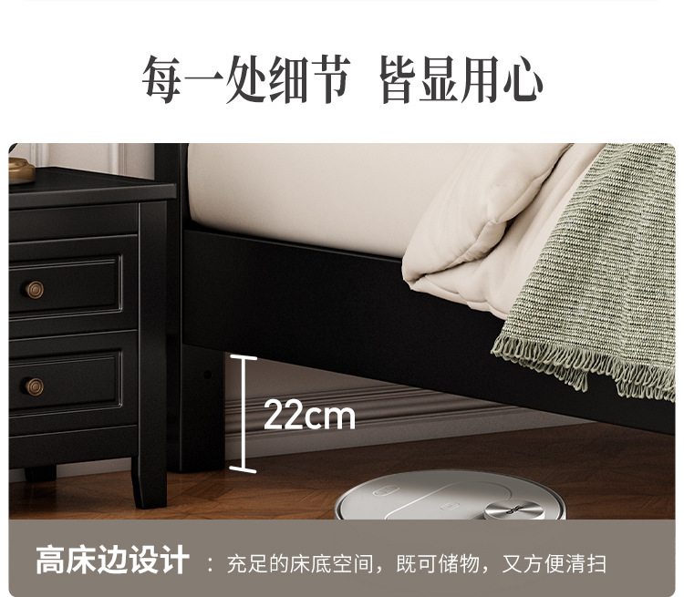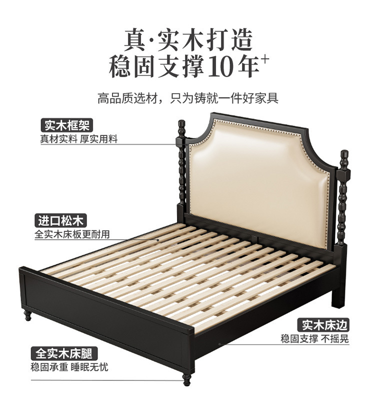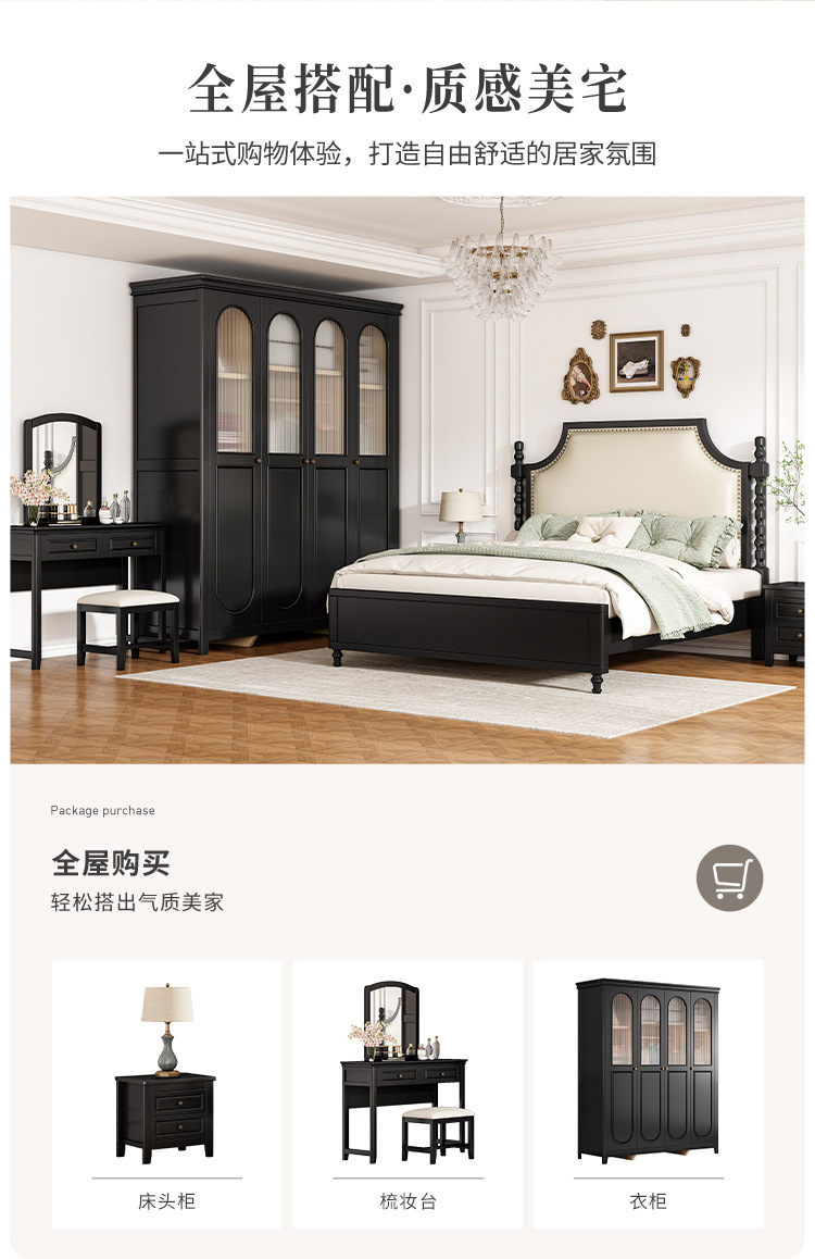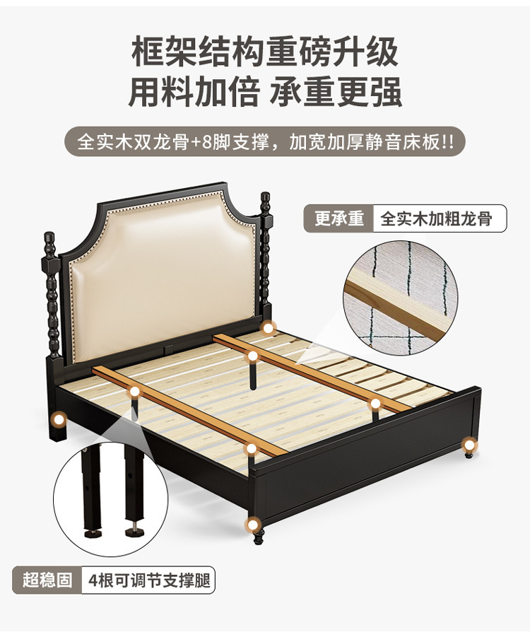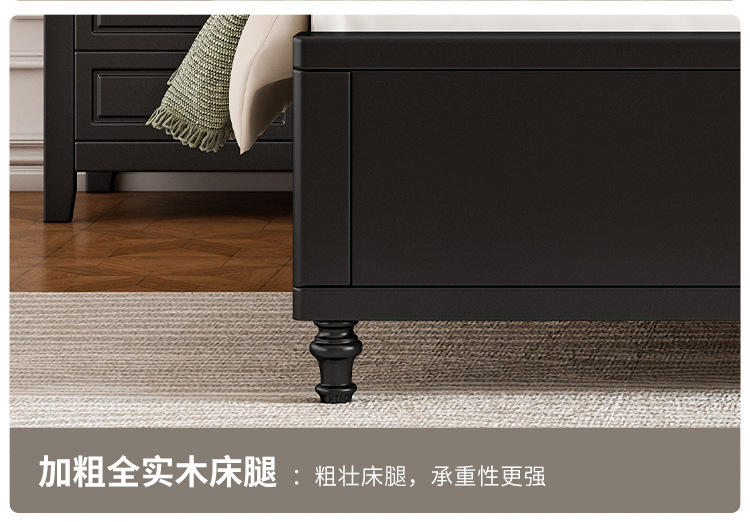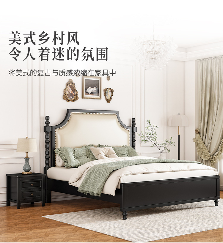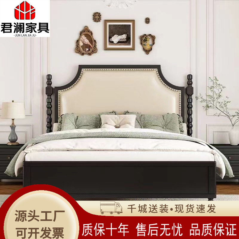 레트로 아메리칸 원목 침대 1.95m m 더블 침대 라이트 럭셔리 마스터 침실 하이 엔드 분위기 소프트 패키지 프렌치 침대 블랙