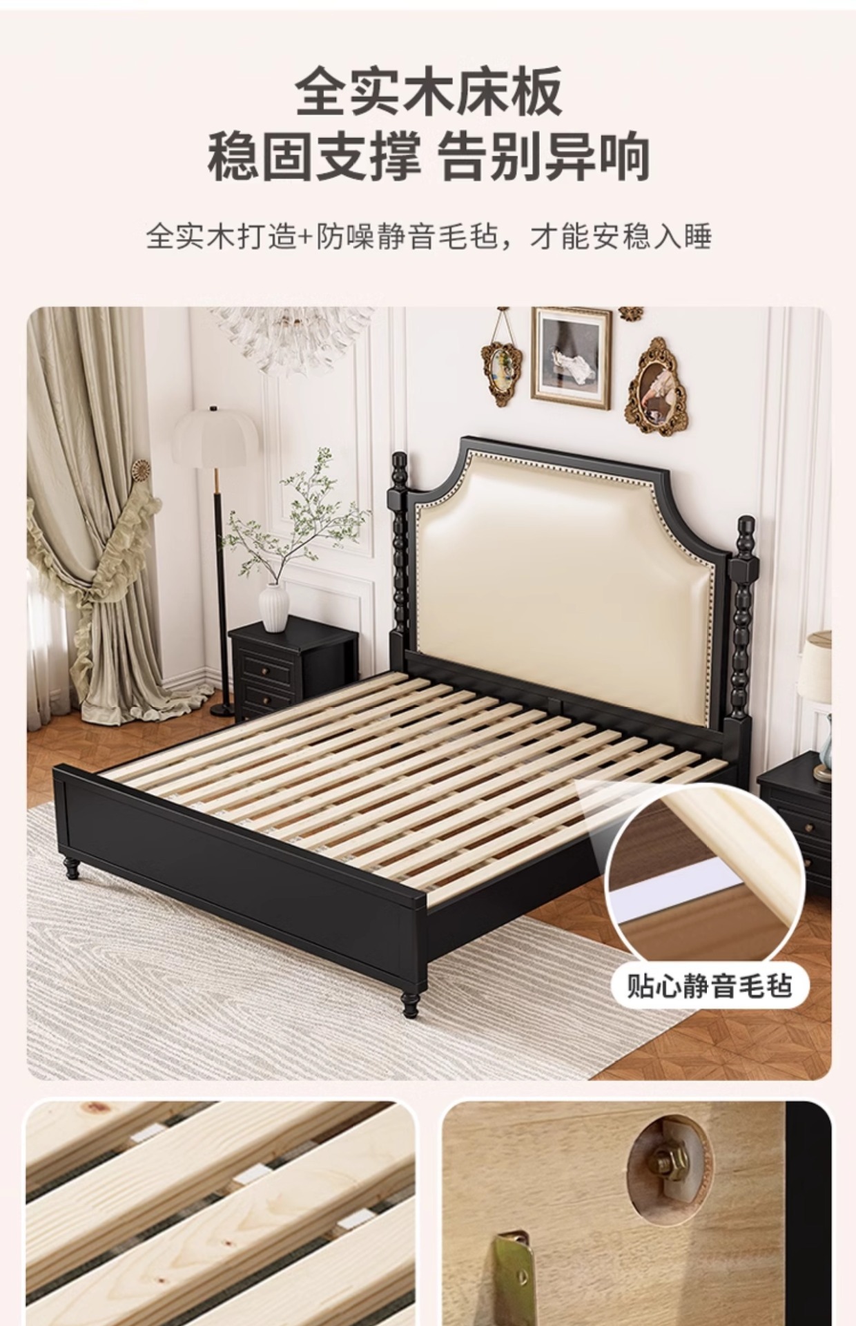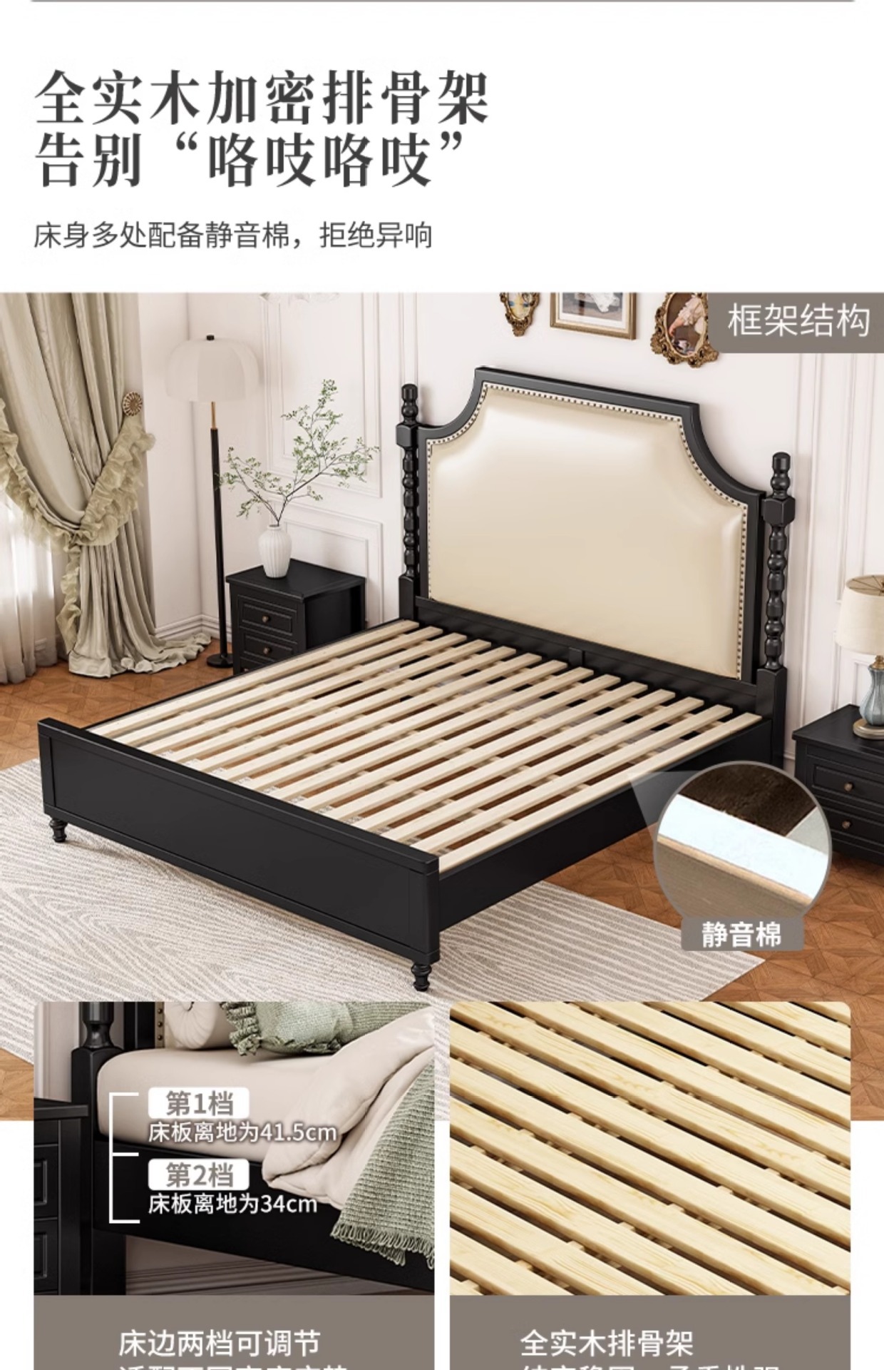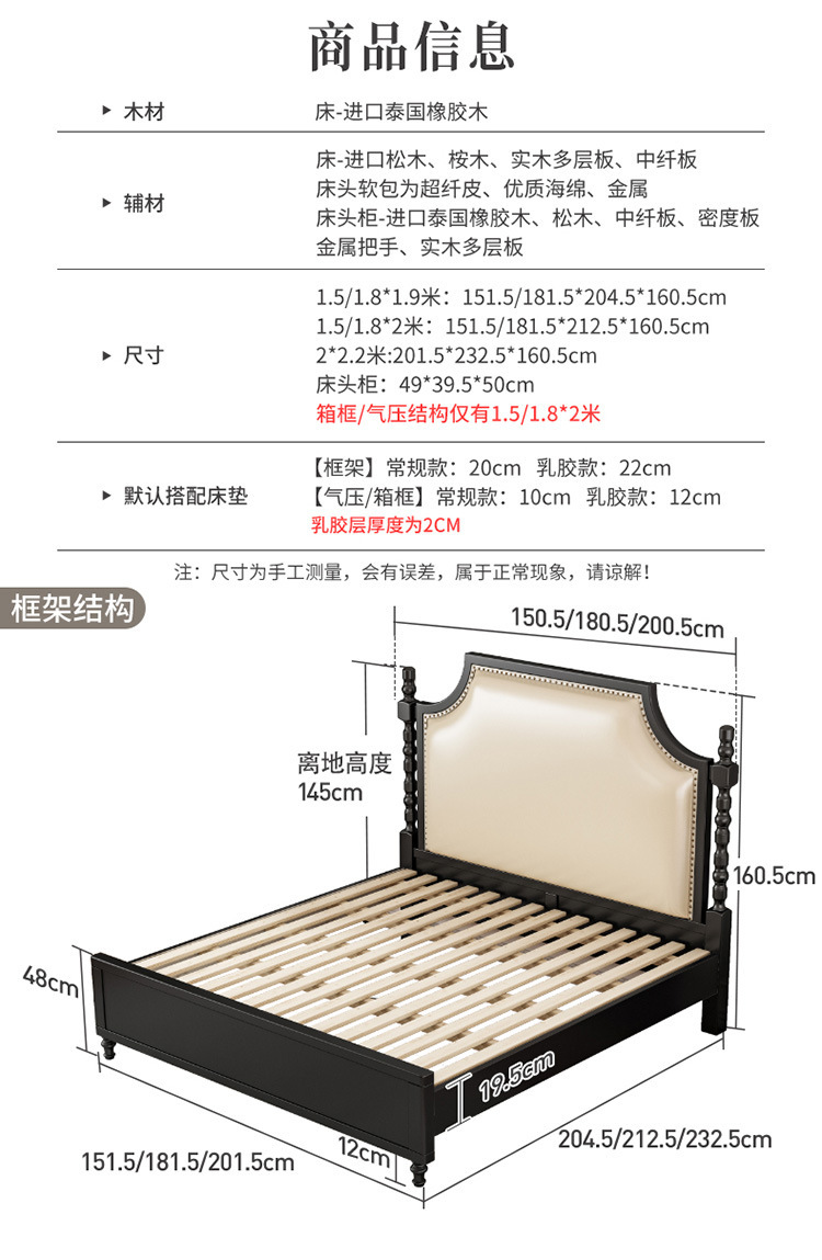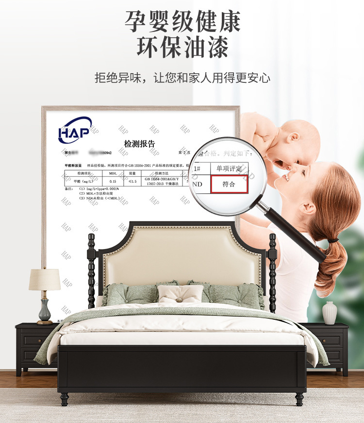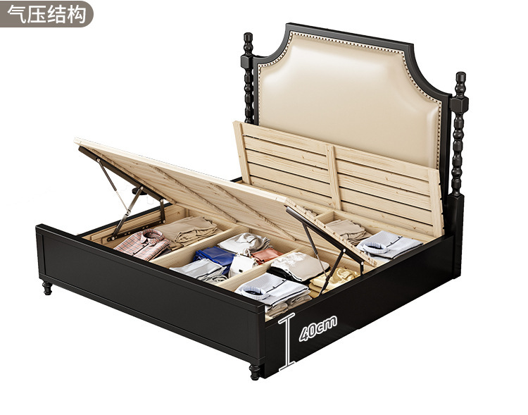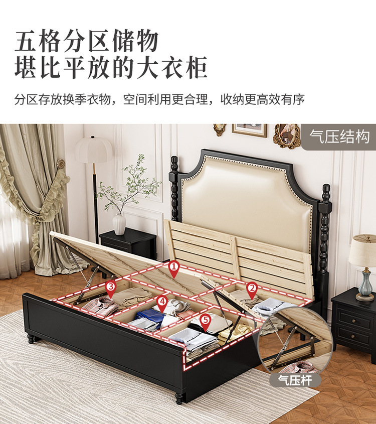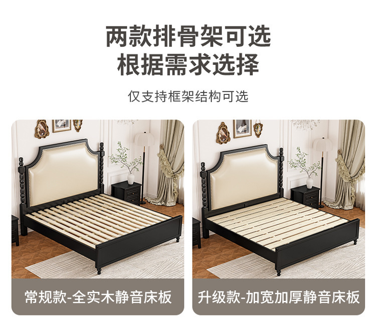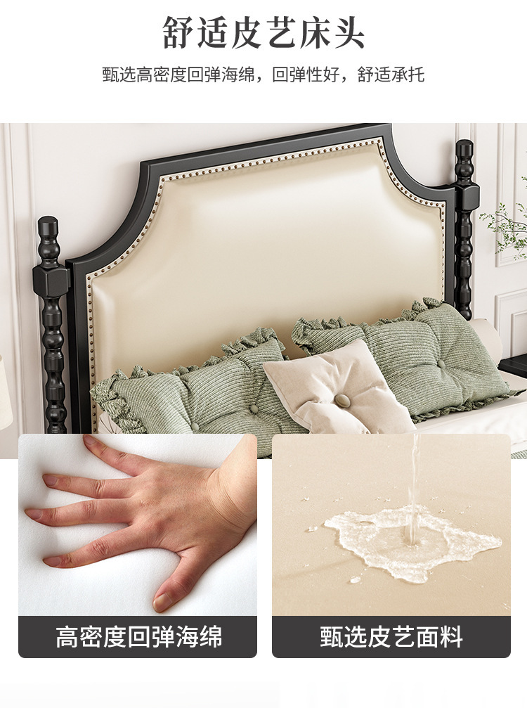 레트로 아메리칸 원목 침대 1.95m m 더블 침대 라이트 럭셔리 마스터 침실 하이 엔드 분위기 소프트 패키지 프렌치 침대 블랙