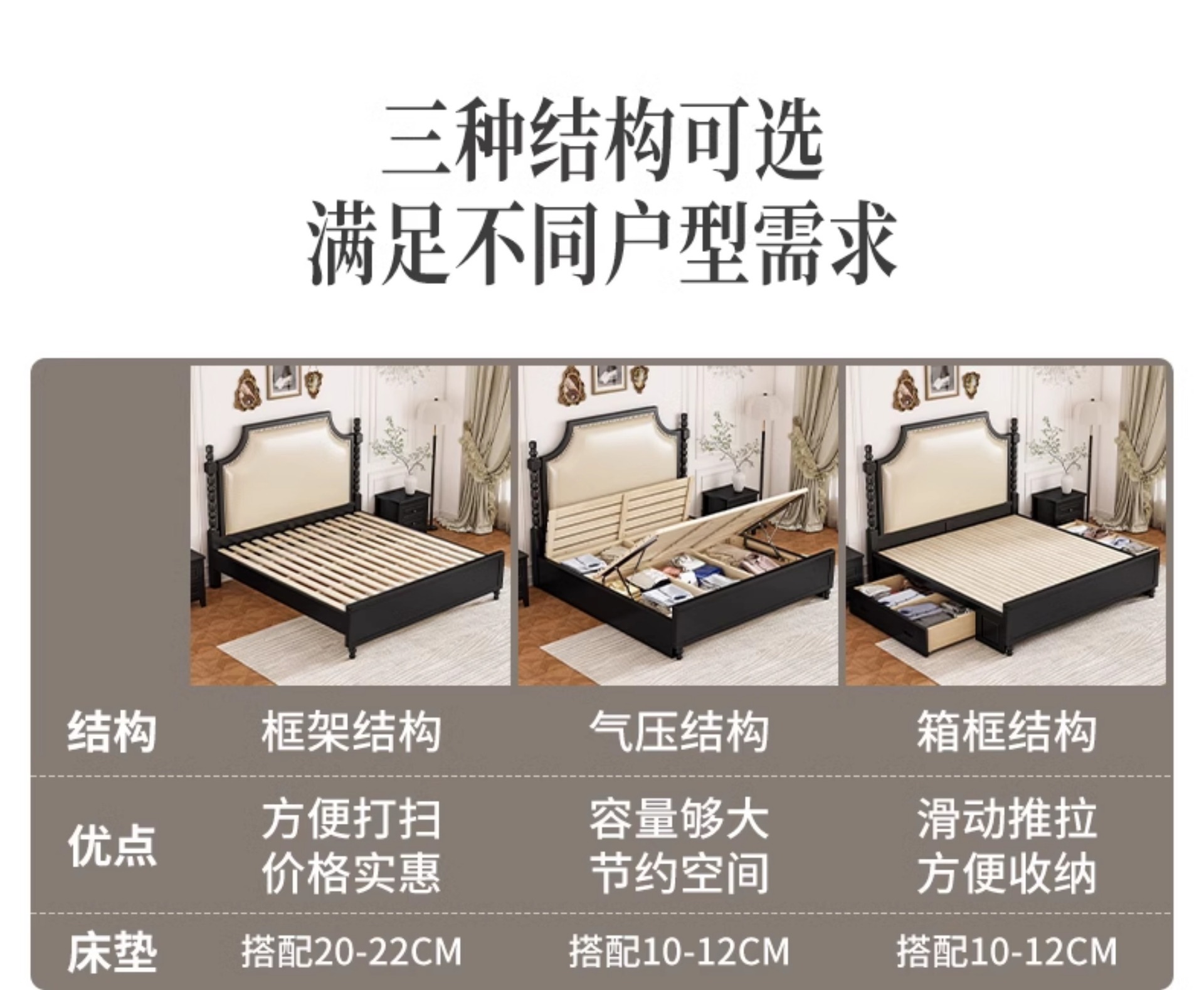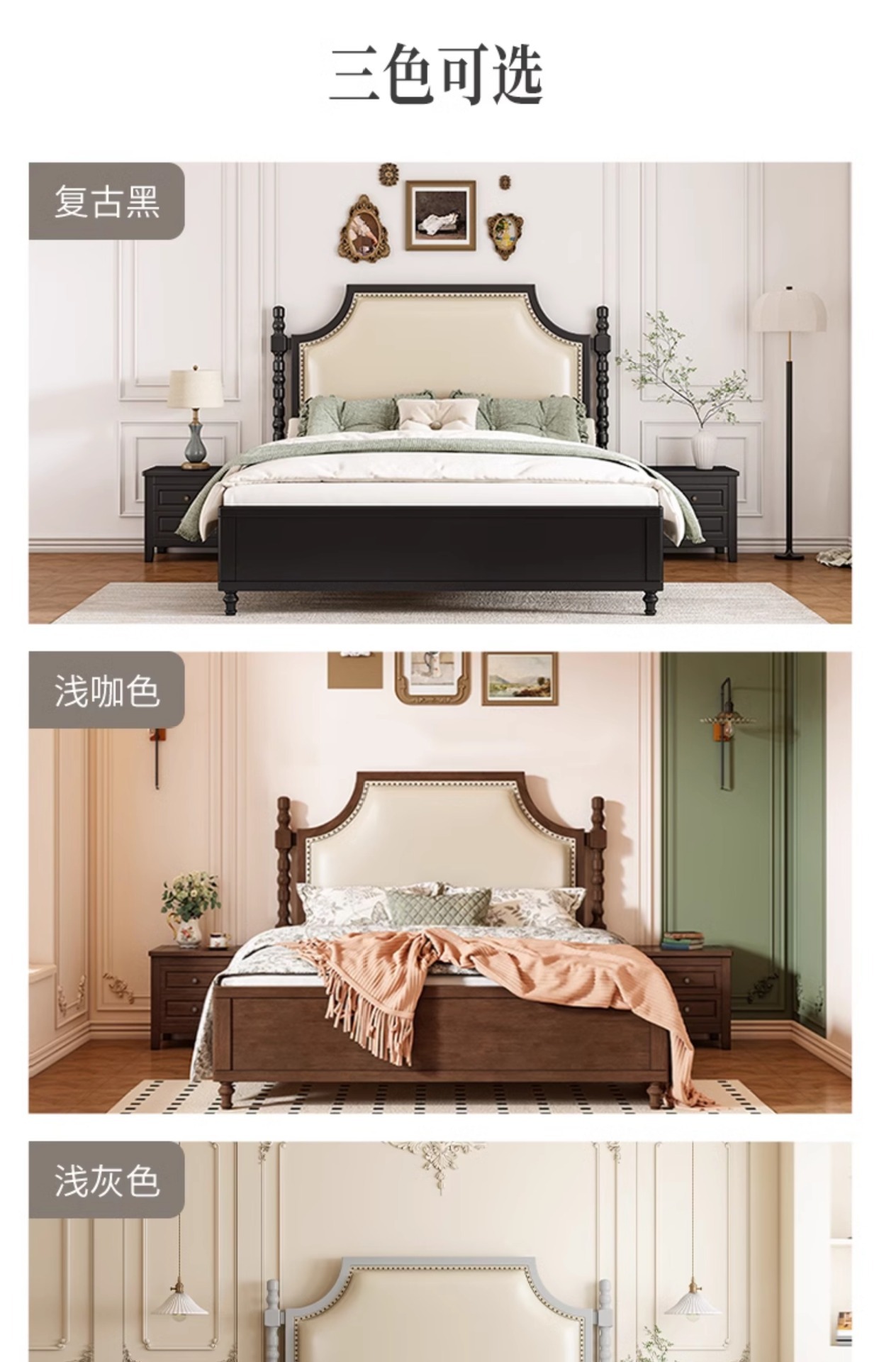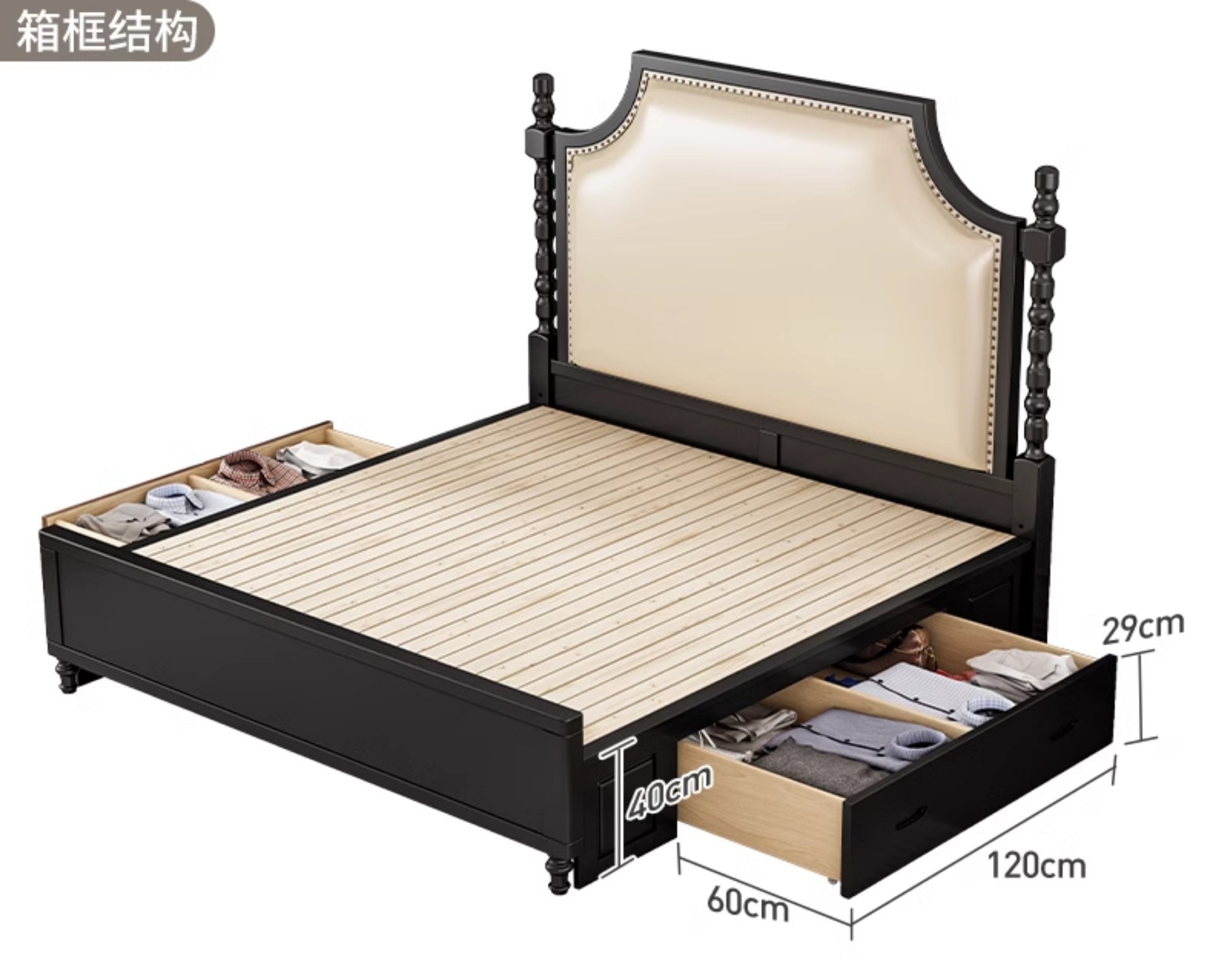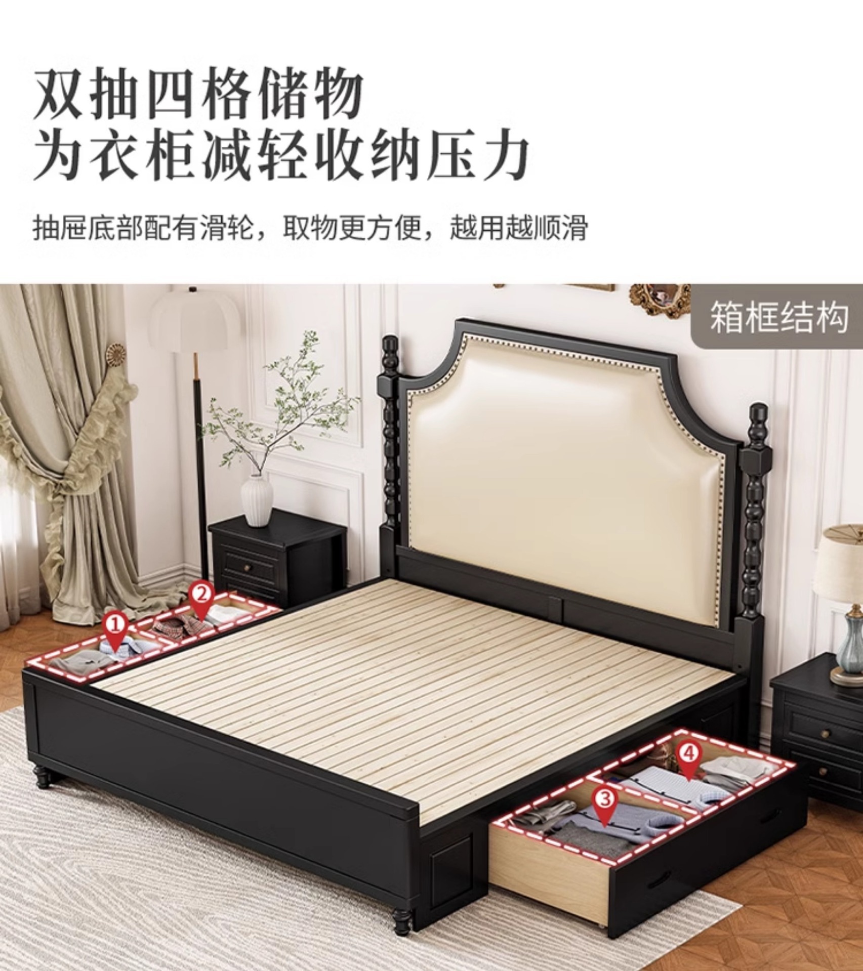 레트로 아메리칸 원목 침대 1.95m m 더블 침대 라이트 럭셔리 마스터 침실 하이 엔드 분위기 소프트 패키지 프렌치 침대 블랙