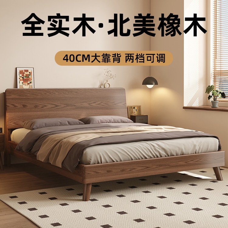 침대 원목 침대 모던 심플 1.5m 홈 호두색 싱글 침대 1.8m 마스터 침실 레드 오크 침대 더블 침대 프레임스토어 가기