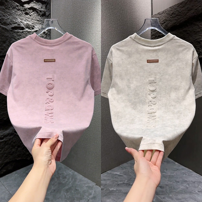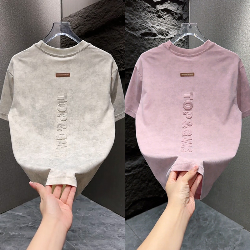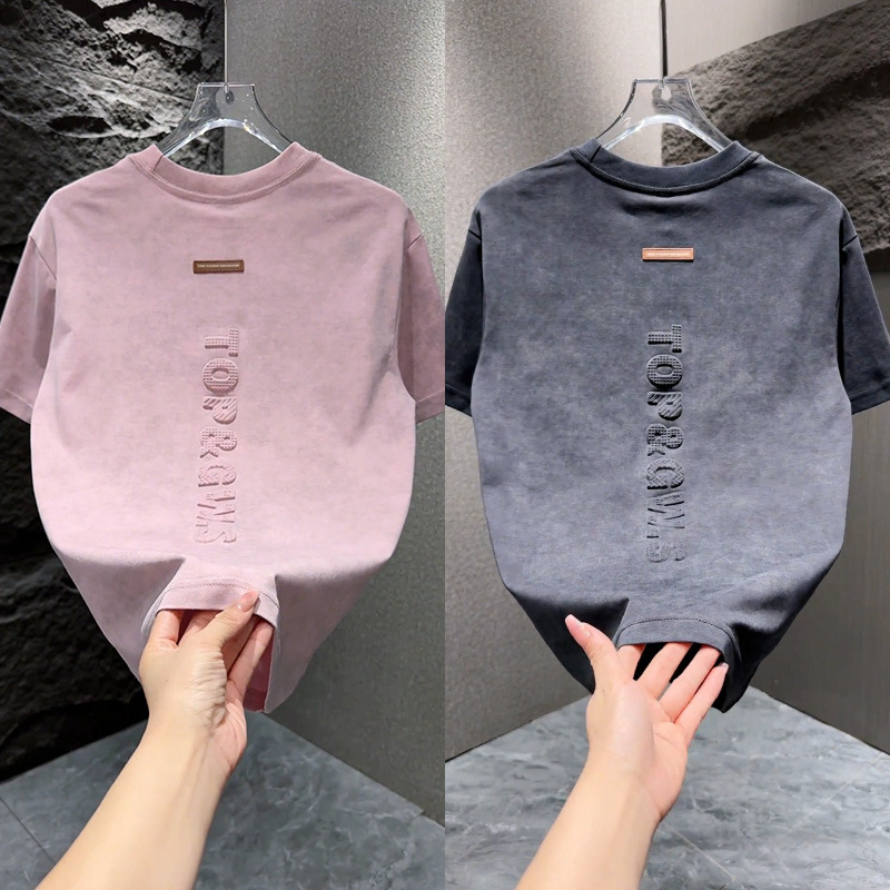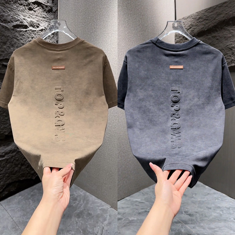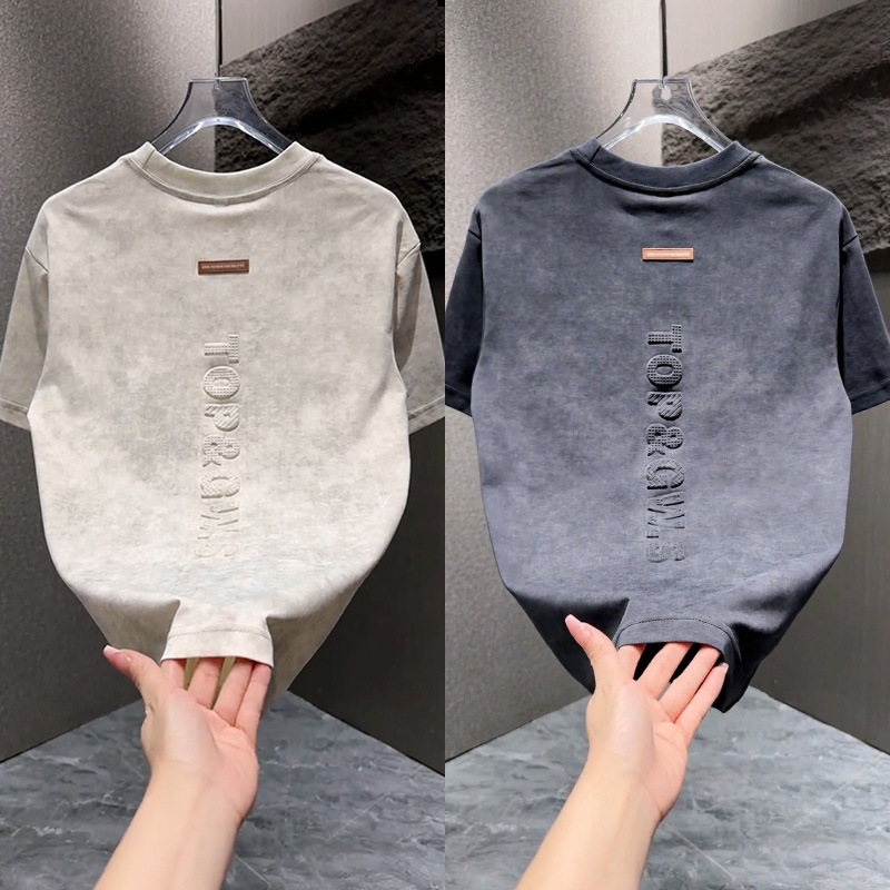 2025년 신상 여름 남성 다용도 레터 반팔 티셔츠 한국식 스머지 탑 트렌디 브랜드 라운드 넥 풀오버 반팔스토어 가기