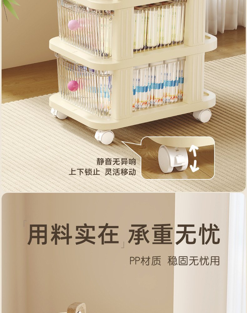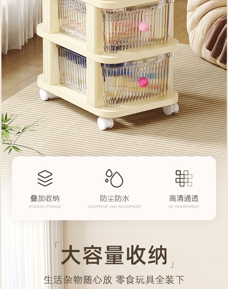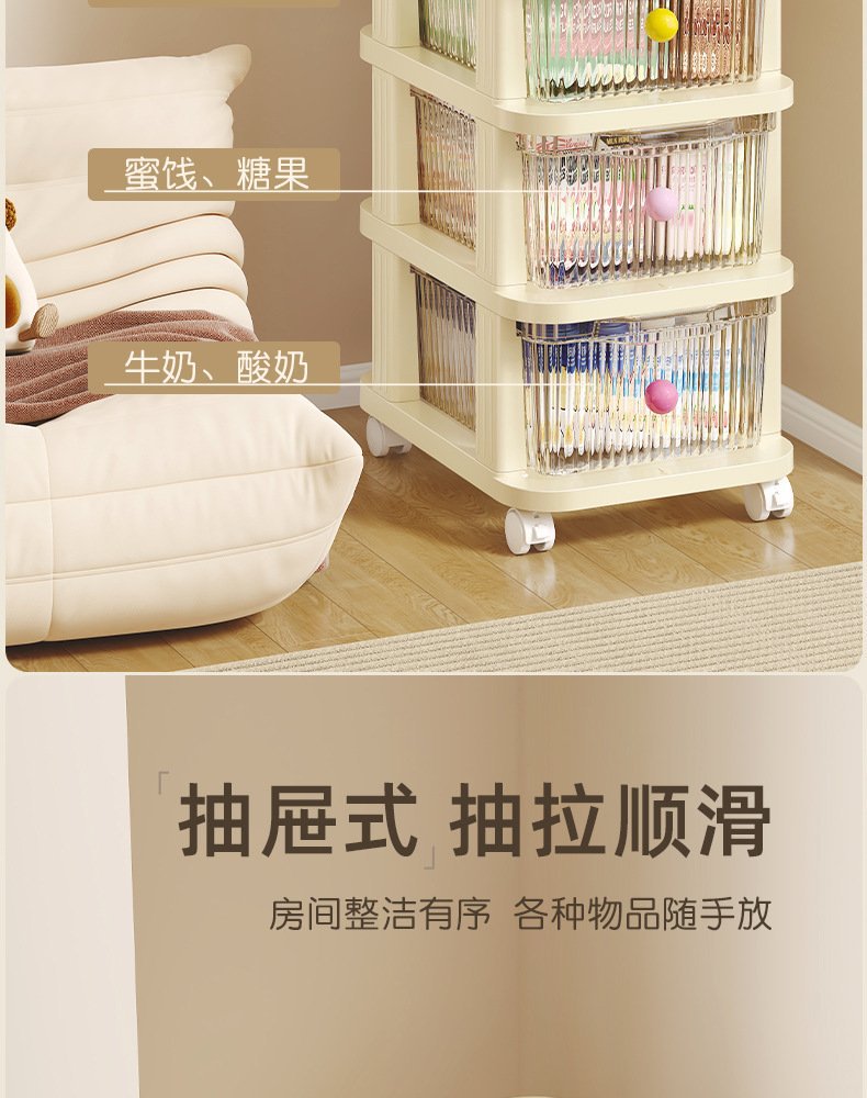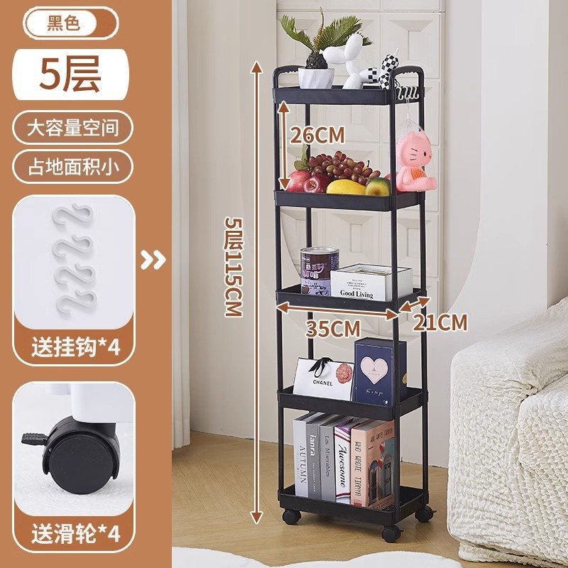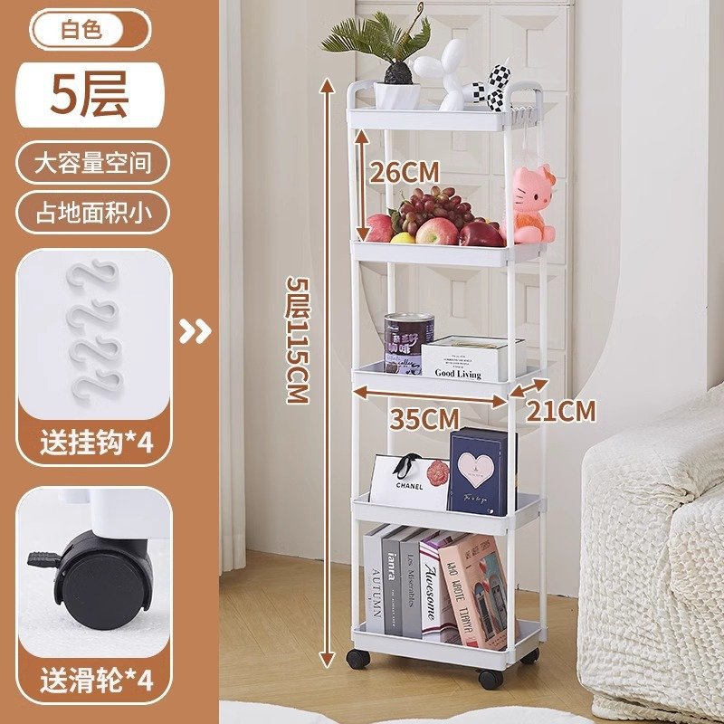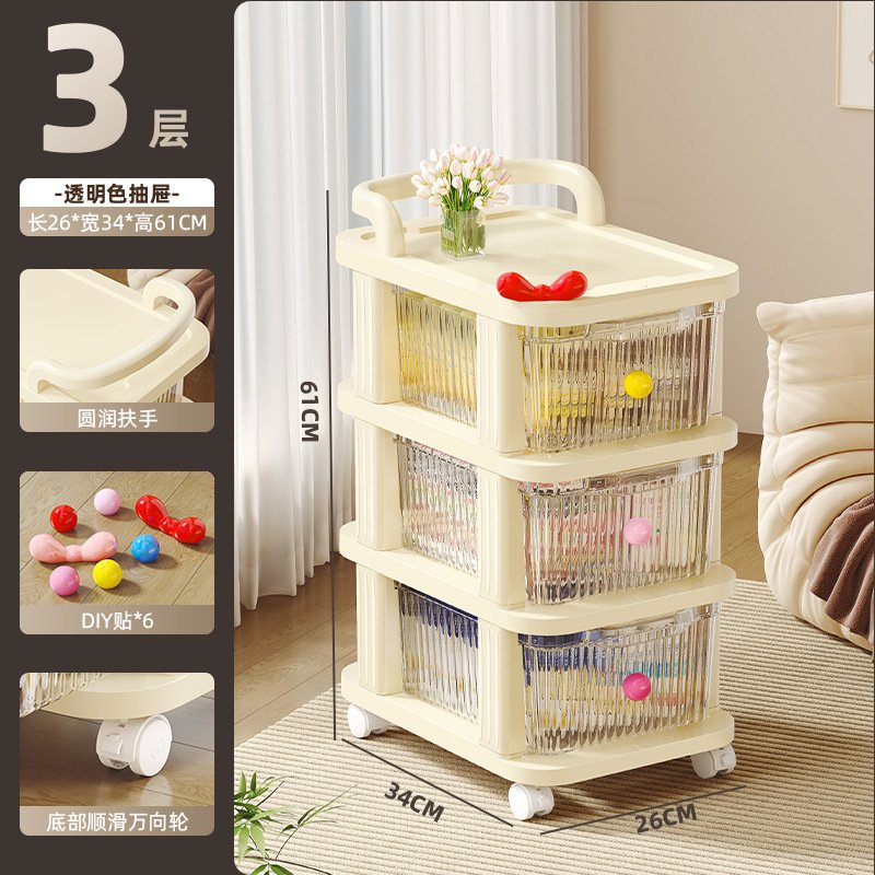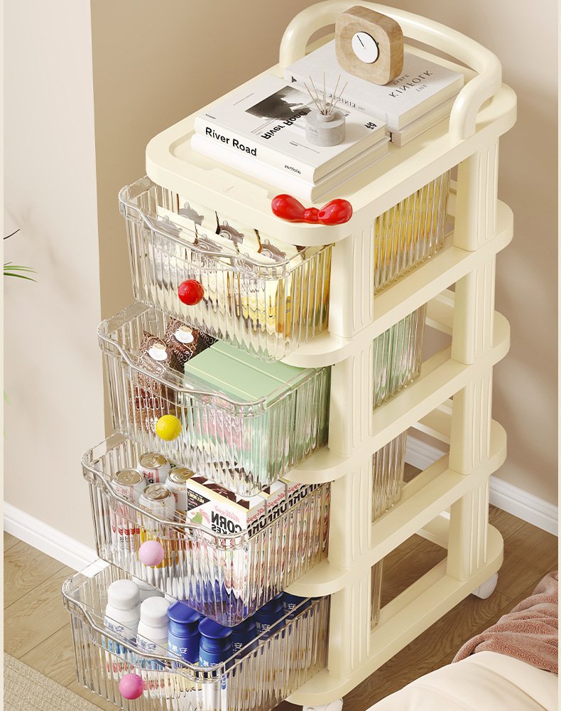 거실과 침실 침대 옆을 위한 바닥에서 이동식 트롤리 보관 랙 다기능 펀치 없는 스낵 및 장난감 보관 캐비닛