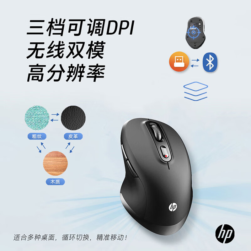 HP FM710A 무선/블루투스 듀얼 모드 마우스 오래 지속되는 사무실 경량 및 휴대용