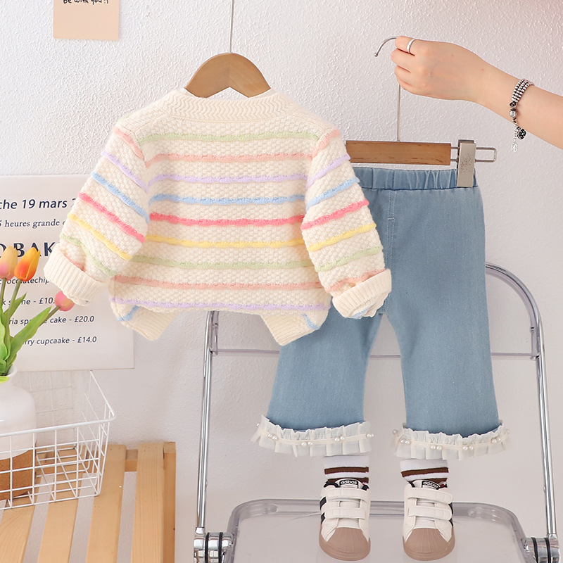 여아 정장 봄, 가을 다채로운 스웨터 카디건 3 피스 세트 2 어린이 소녀 옷 1 세 아기 소녀
