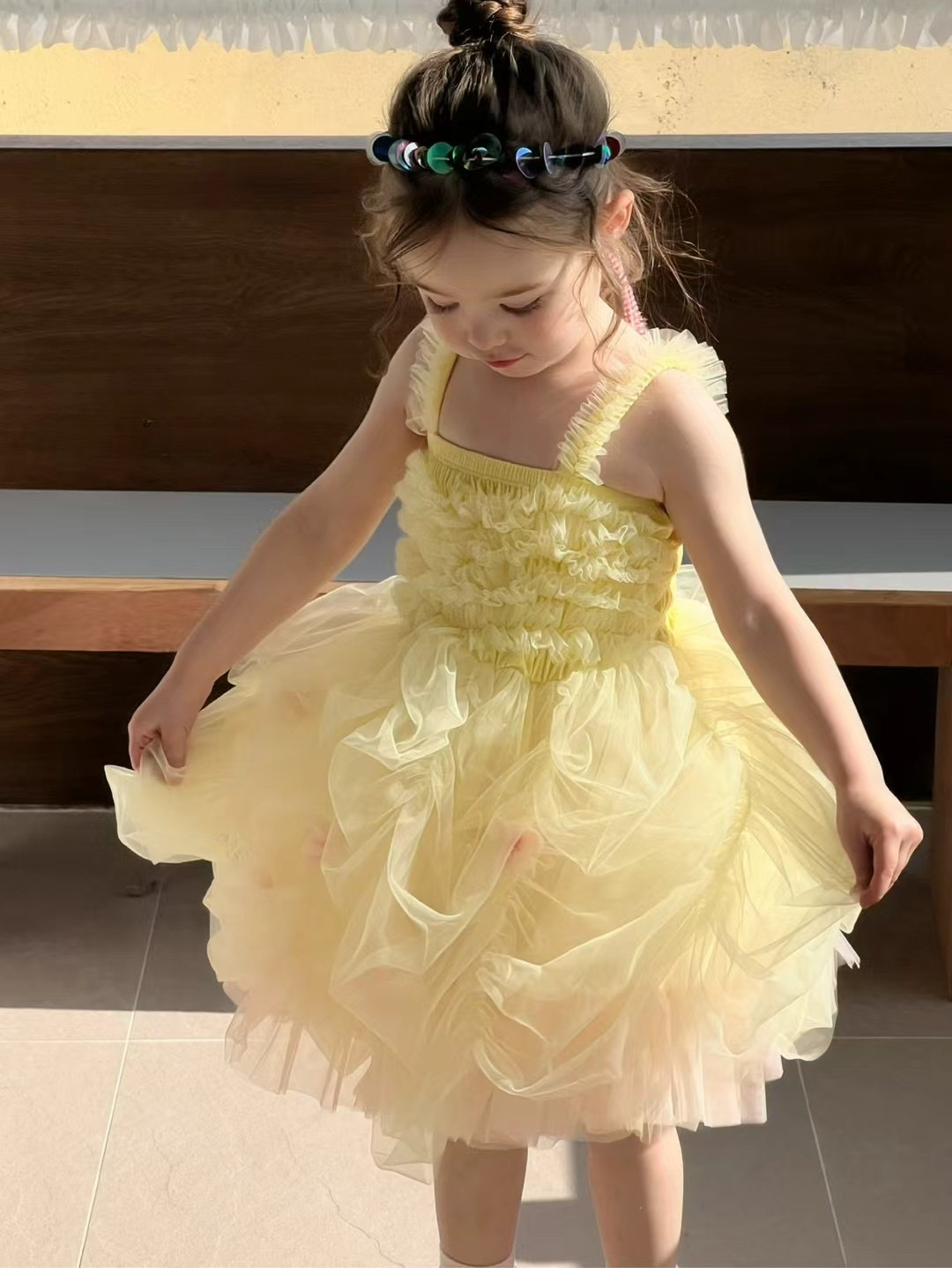 2026 여아용 거즈 드레스 공주 드레스 여름 여아용 튜튜 드레스 어린이용 멜빵 드레스 퍼프 드레스 아동복