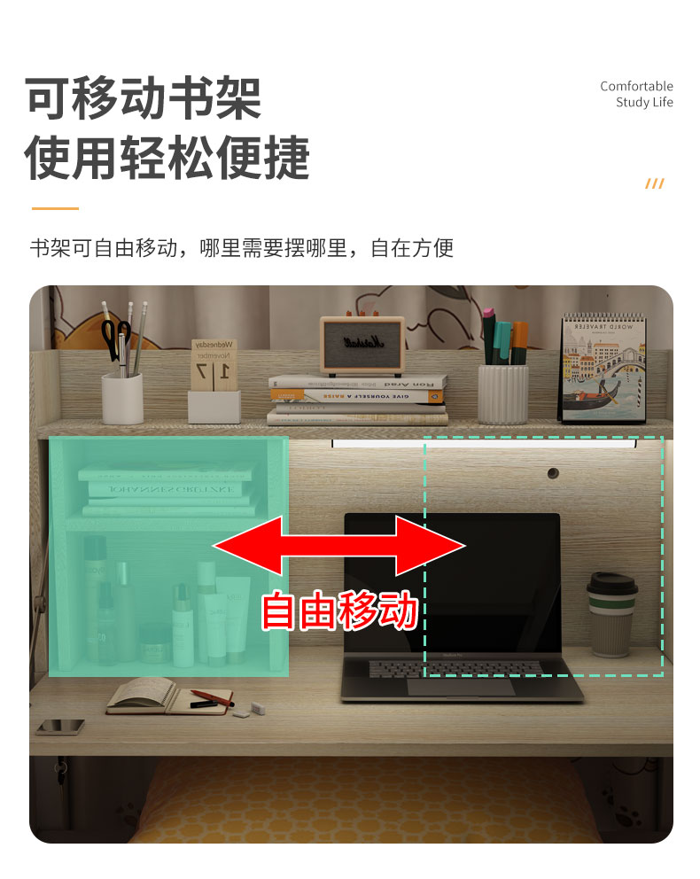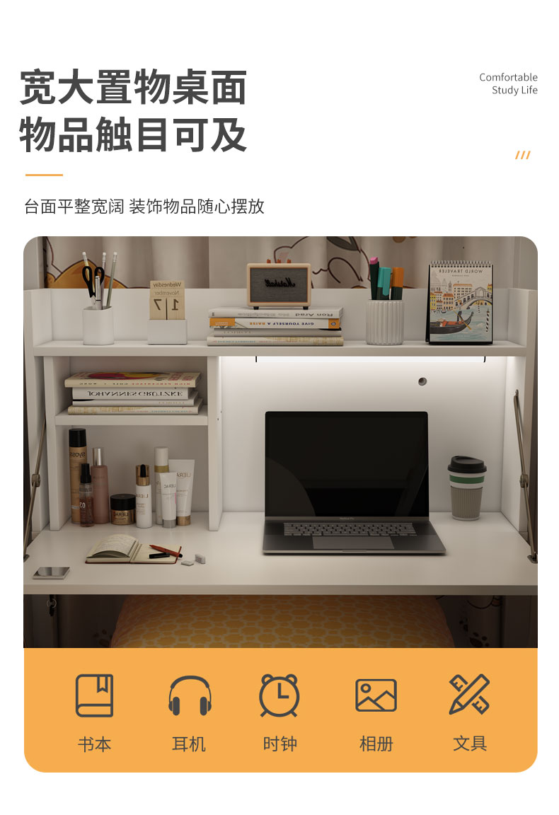 대학생 기숙사 침대 컴퓨터 책상, 접이식 게으른 이층 침대 책상, 기숙사 이층 침대 공중에 매달린 작은 학습 테이블