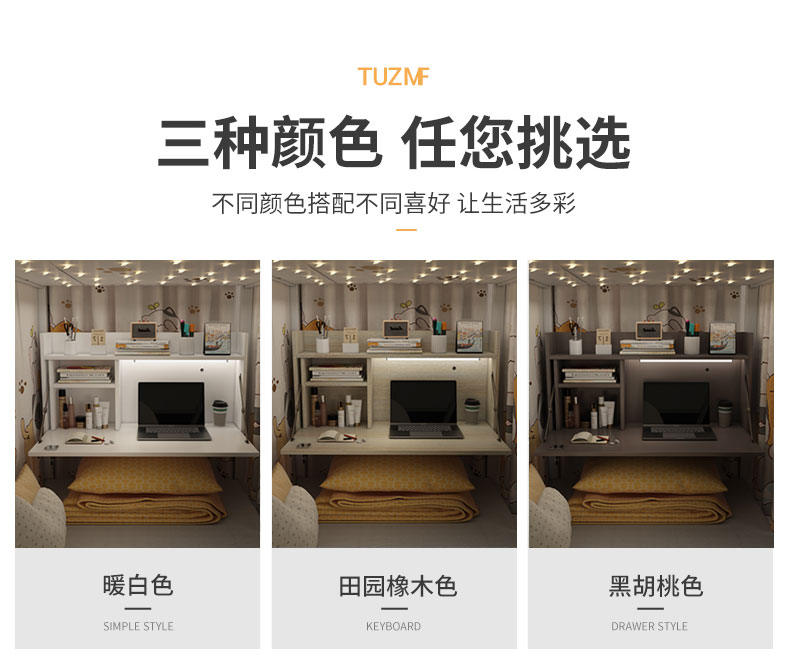 대학생 기숙사 침대 컴퓨터 책상, 접이식 게으른 이층 침대 책상, 기숙사 이층 침대 공중에 매달린 작은 학습 테이블스토어 가기