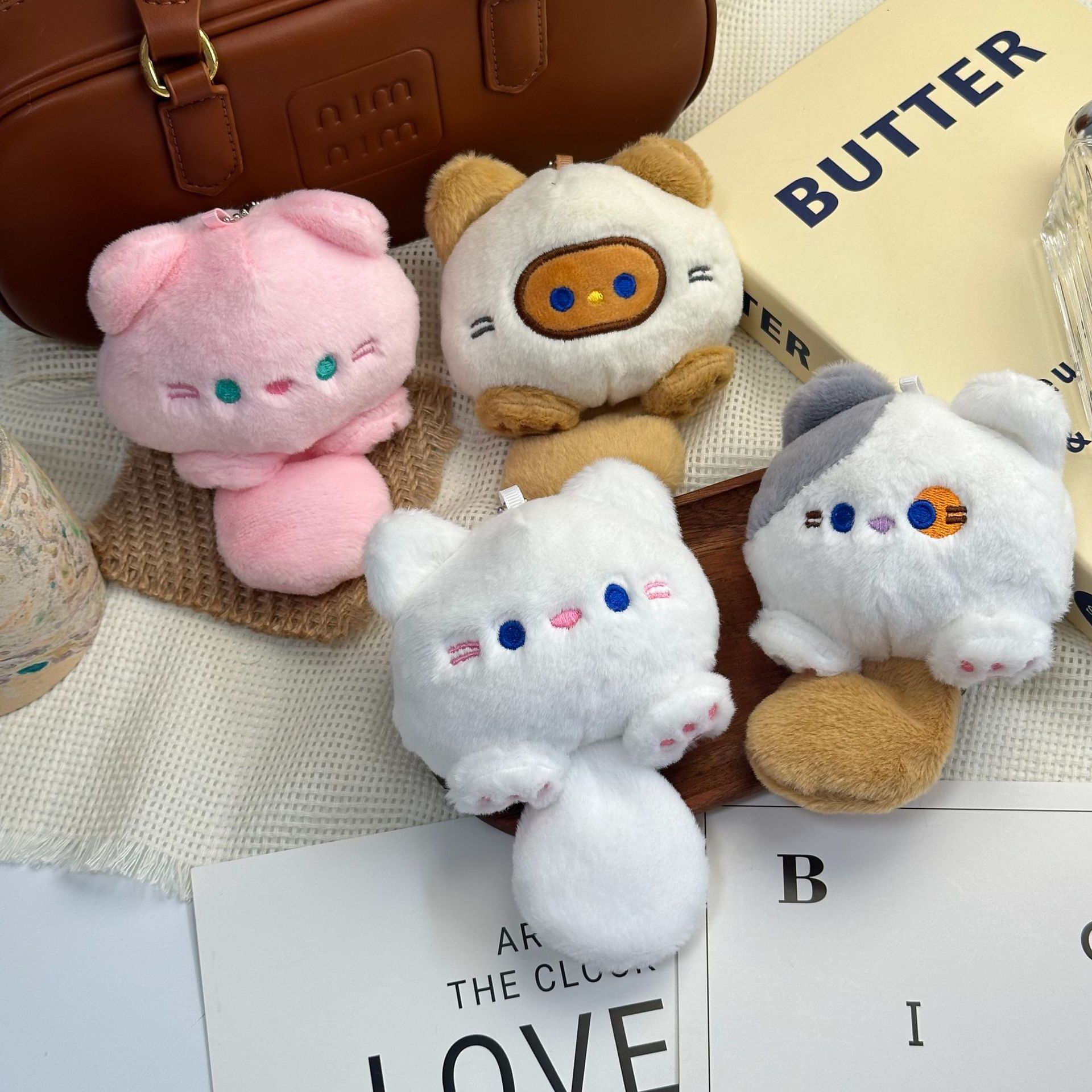귀여운 삐걱거리는 고양이 플러시 펜던트 인형 뽑기 기계 인형 BIBI 고양이 키 체인 작은 펜던트 선물